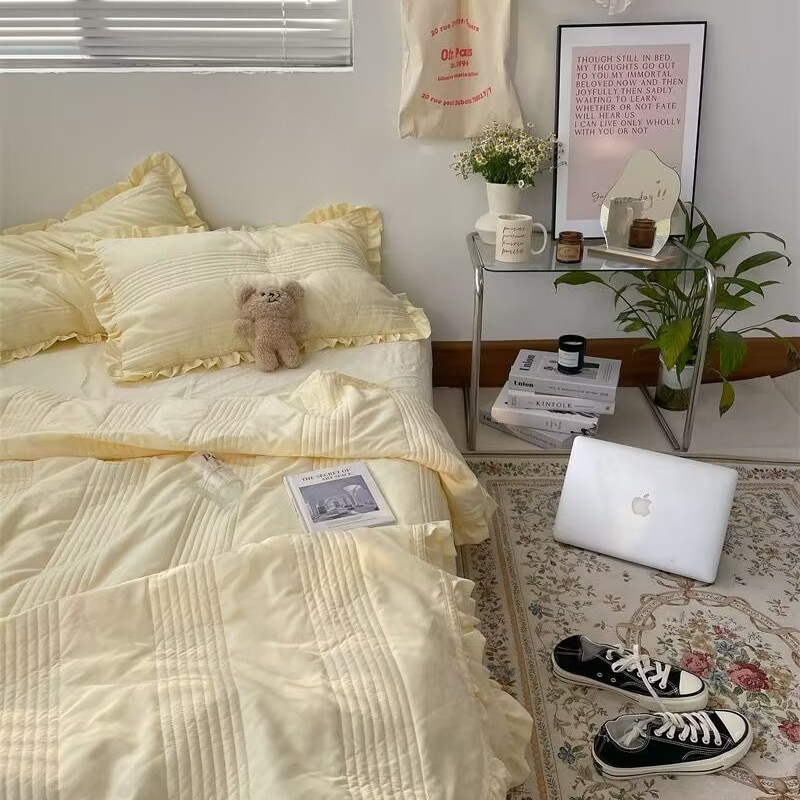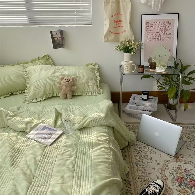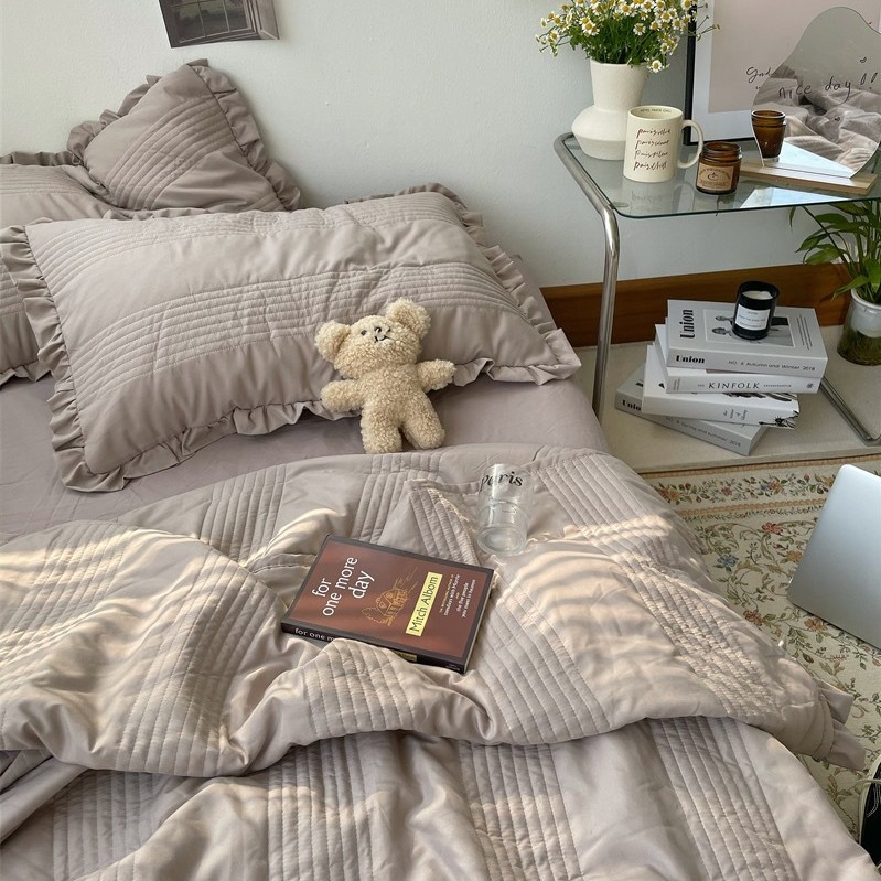 하늘이 회색이 되지 않을 것입니다! ins 블로거의 같은 스타일 솔리드 컬러 여름 이불 4피스 세트 인터넷 연예인 에어컨 이불 여름 얇은 이불