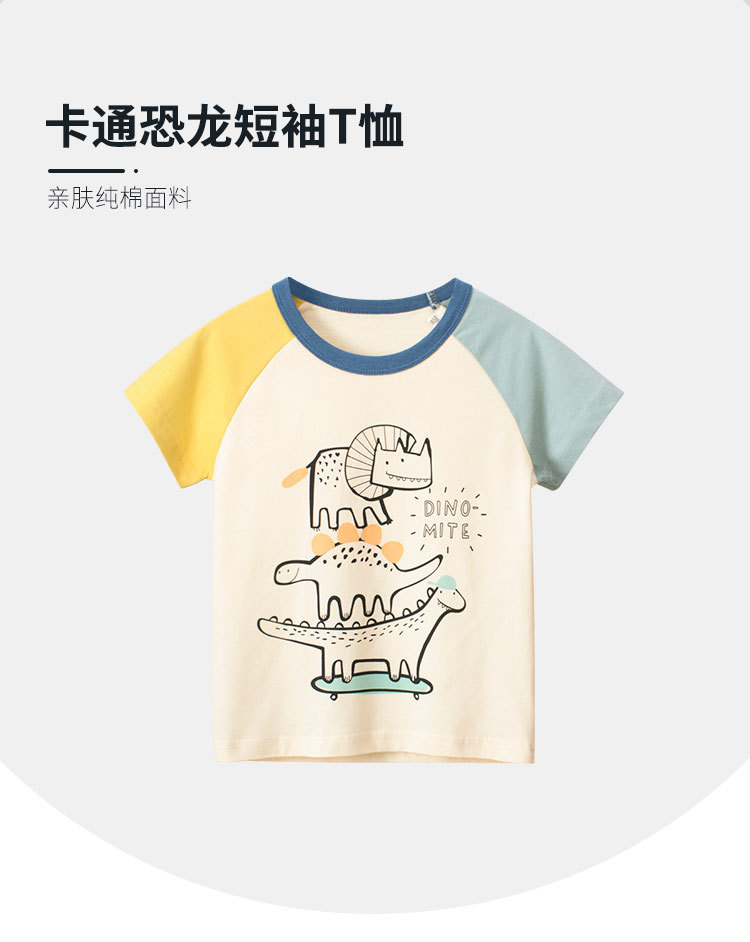 한국어 버전 아동복 2024 여름 신작 27 어린이 어린이 공룡 남성 반팔 티셔츠 반팔 원피스 도매스토어 가기