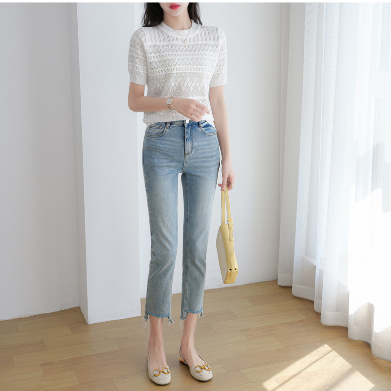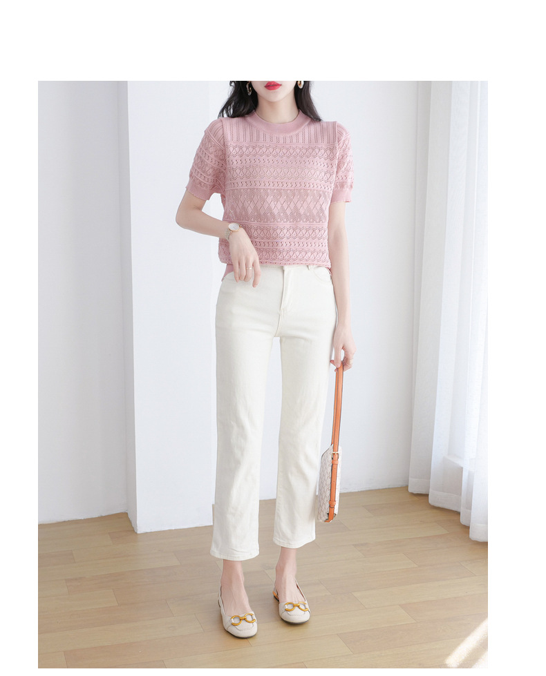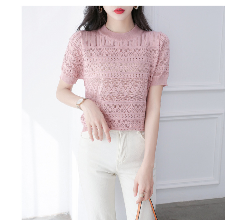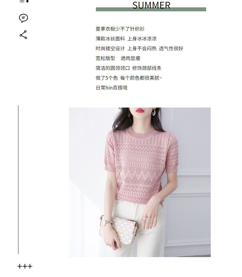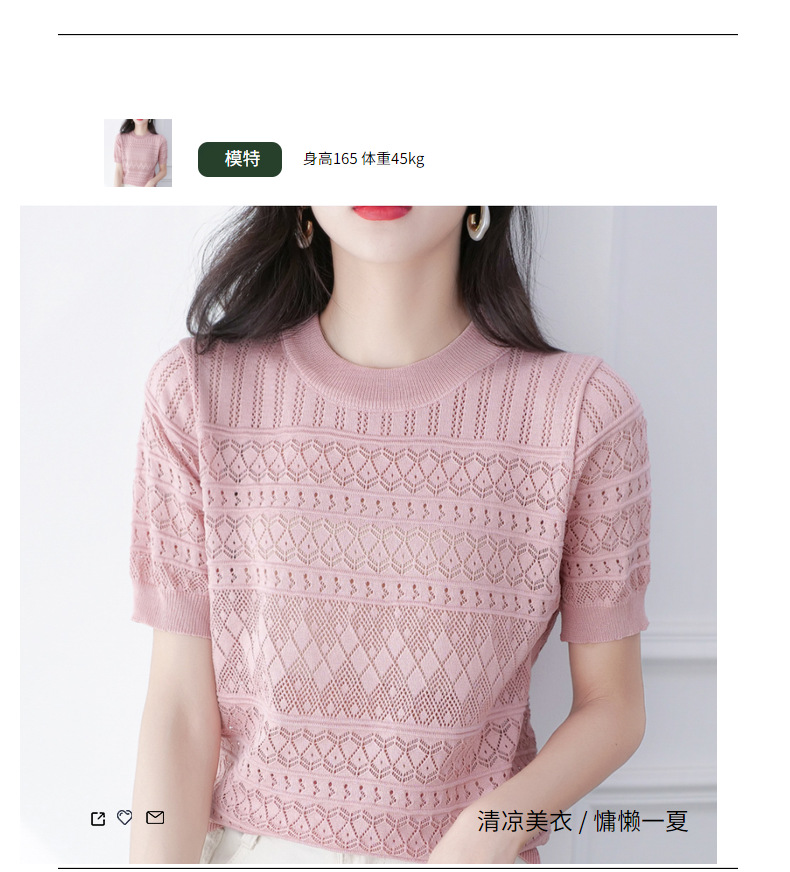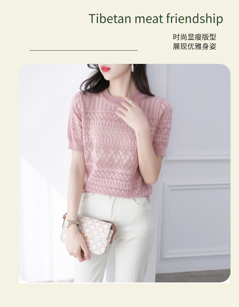 패셔너블한 투명 얇은 니트 여성용 2025 여름 신상 여성복 우아한 반팔 상의 아이스 실크 루즈핏 블라우스스토어 가기