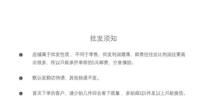 拍前须知:本店批发利润微薄,仅支持2件内退货,多件不支持退货,介意慎拍。