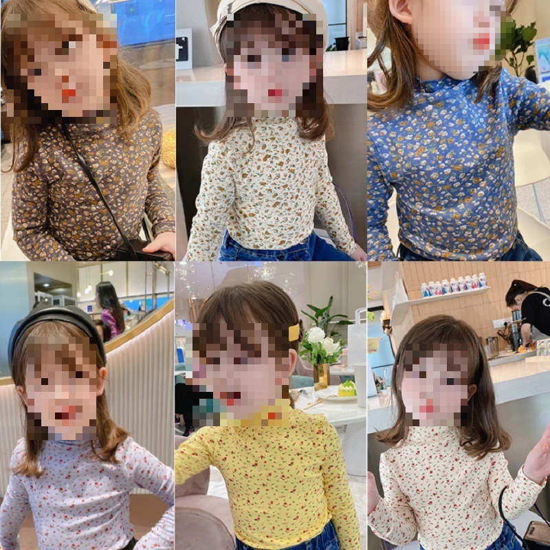 여아용 티셔츠 꽃무늬 하이넥 롤업 밑단 셔츠 25 가을/겨울 신상품 수출용 아동복 3-8세스토어 가기