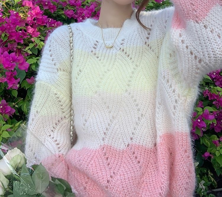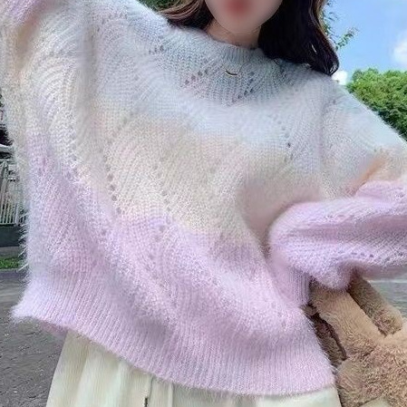 그라디언트 중공 스웨터 착용 긴팔 스웨터 여성 가을 2023 새로운 달콤한 디자인 틈새 풀오버 스웨터