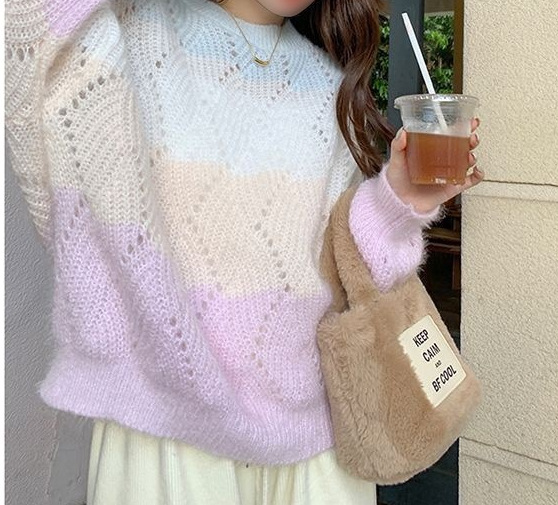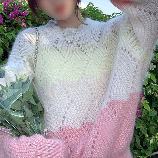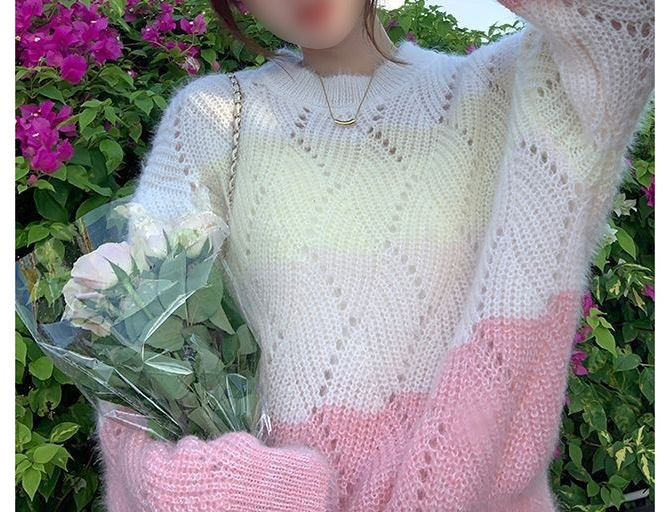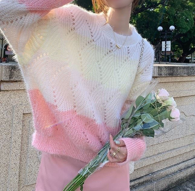 그라디언트 중공 스웨터 착용 긴팔 스웨터 여성 가을 2023 새로운 달콤한 디자인 틈새 풀오버 스웨터스토어 가기