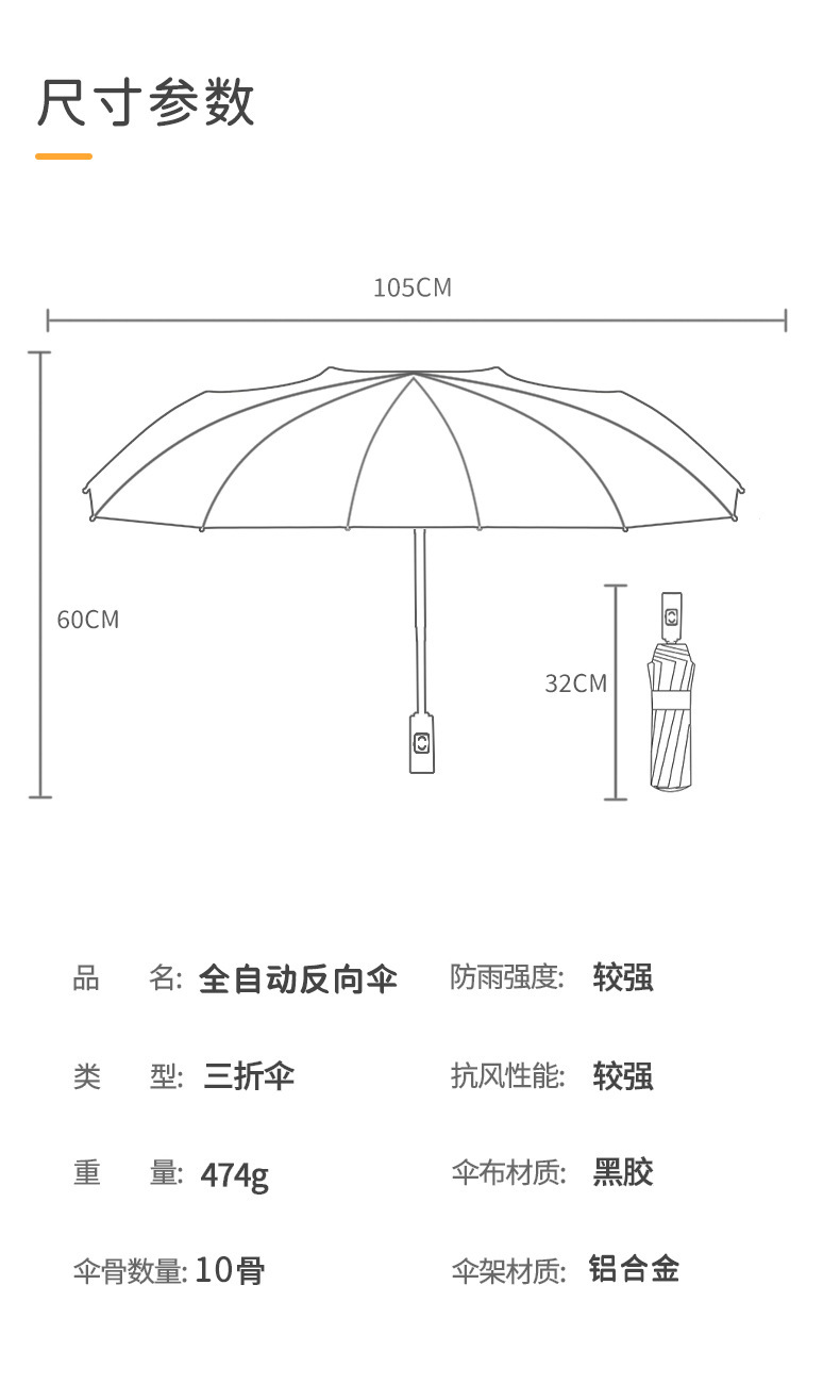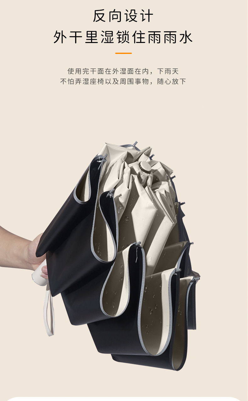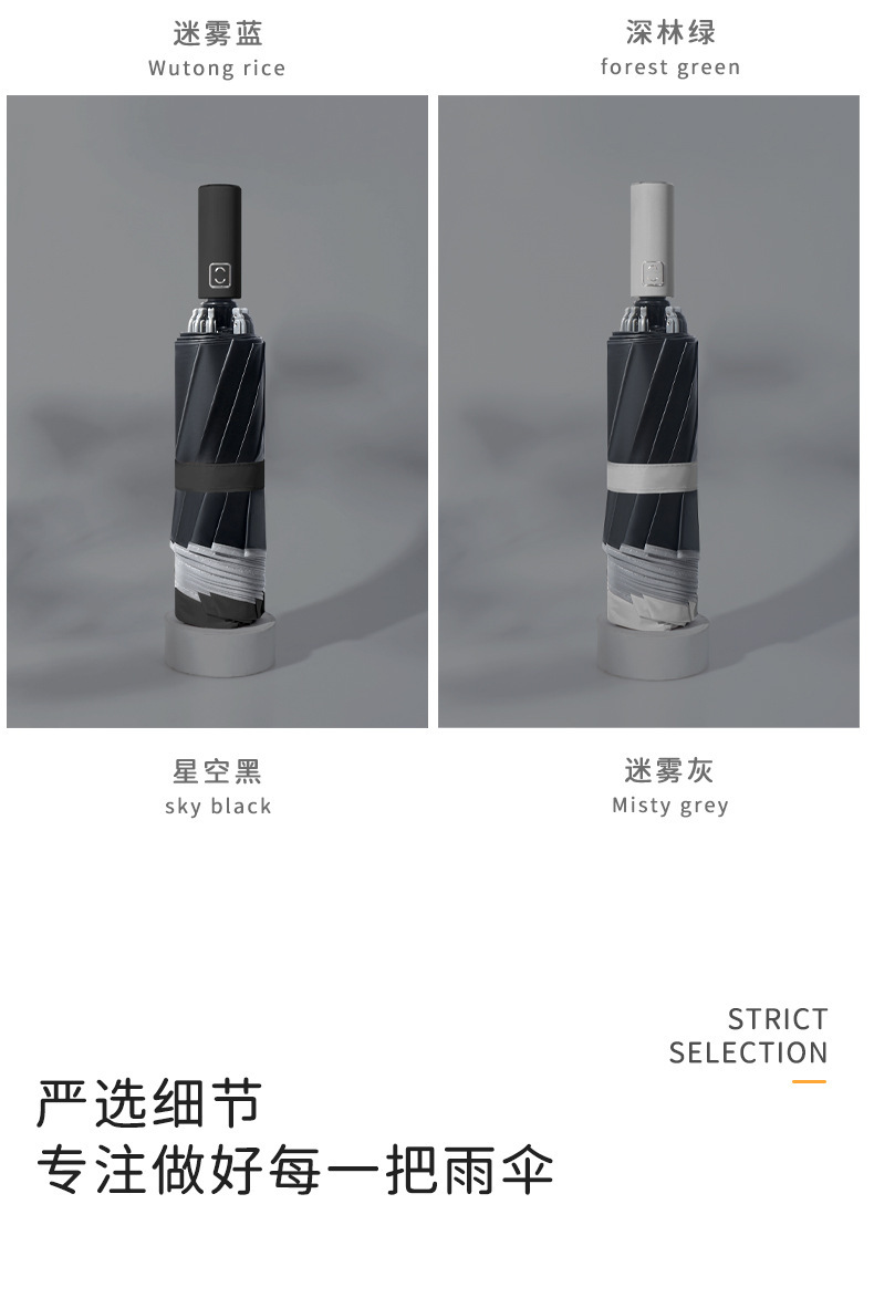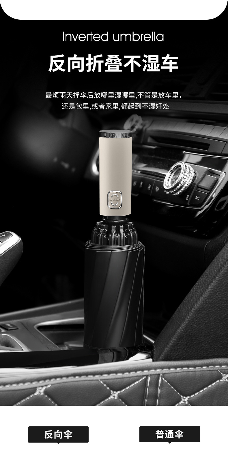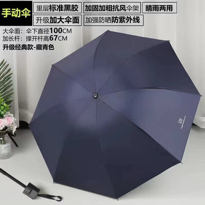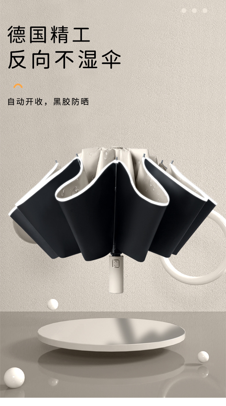 • 네이비-8 뼈 역방향 핸드 오픈 블랙 접착제 우산