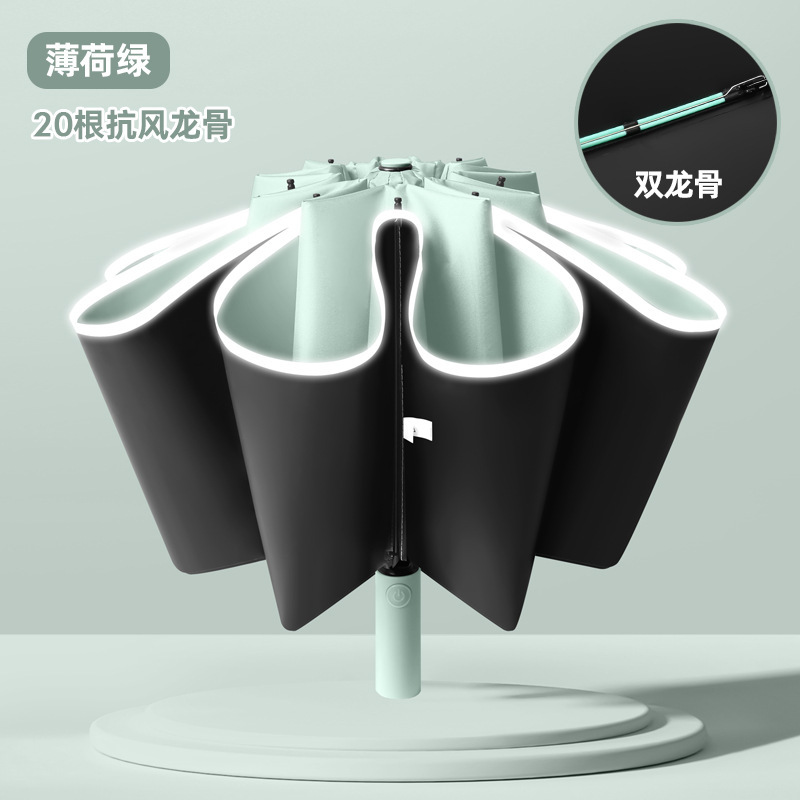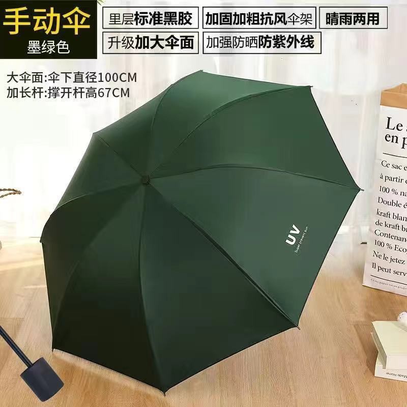 • 다크 그린-8 뼈 역방향 핸드 오픈 블랙 접착제 우산