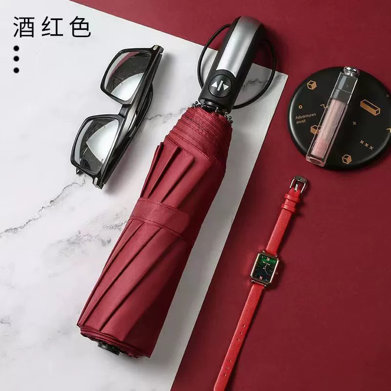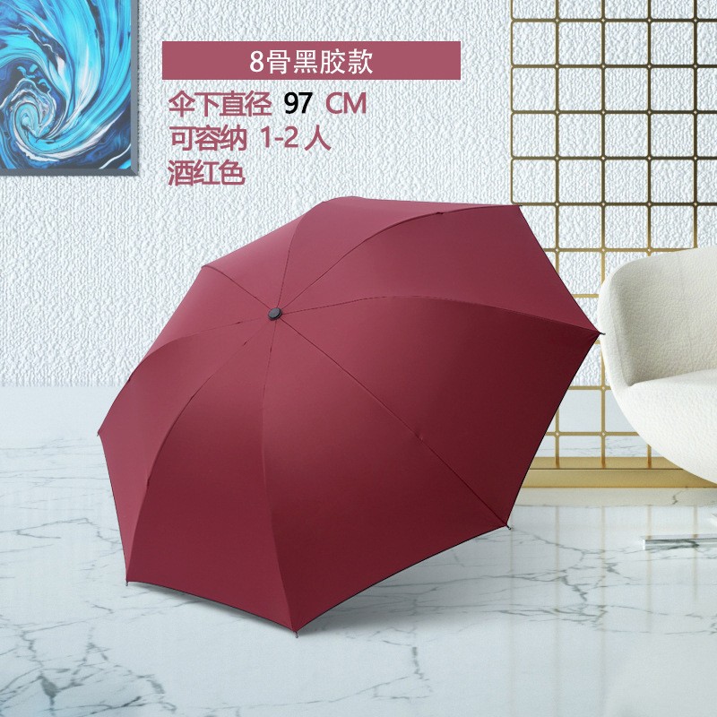 • 버건디-8 뼈 반전 손 오픈 블랙 고무 우산