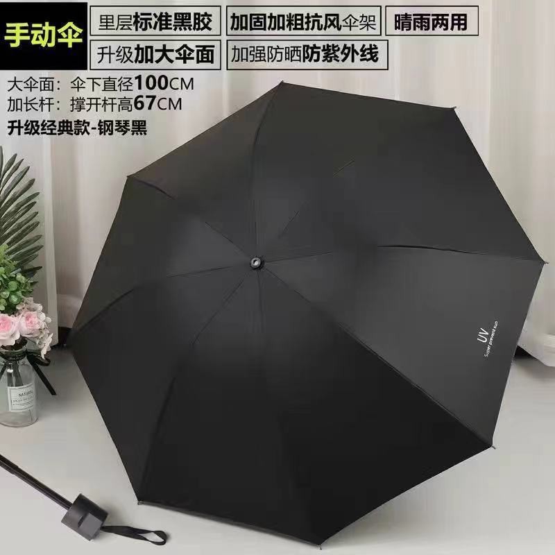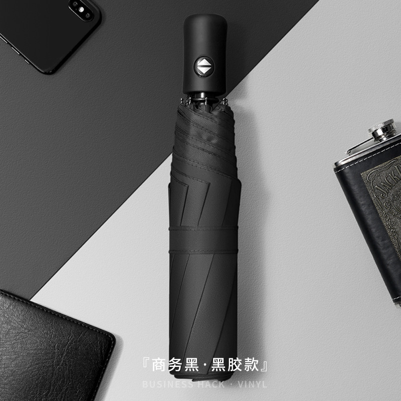 • 블랙-8 뼈 역 손 오픈 블랙 접착제 우산