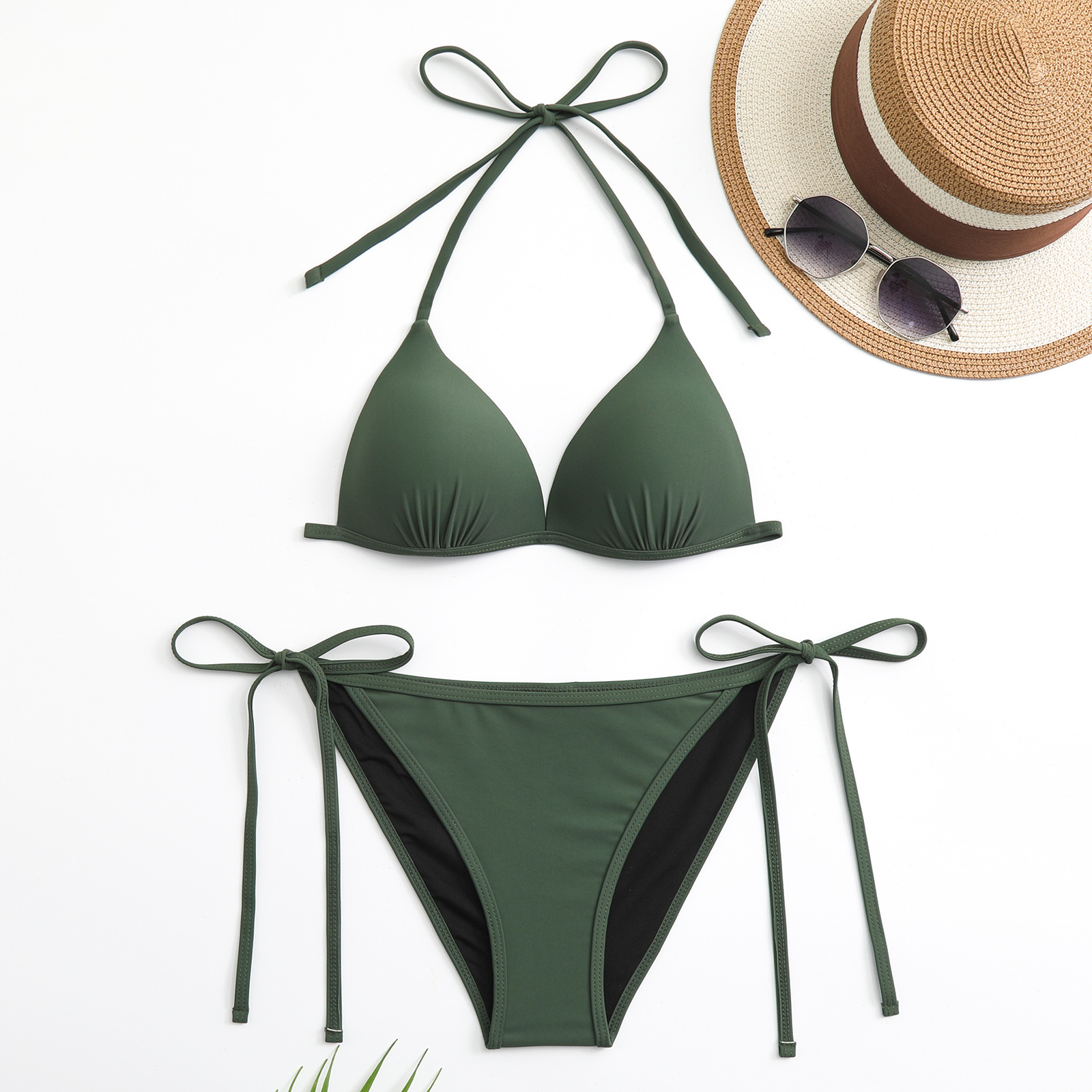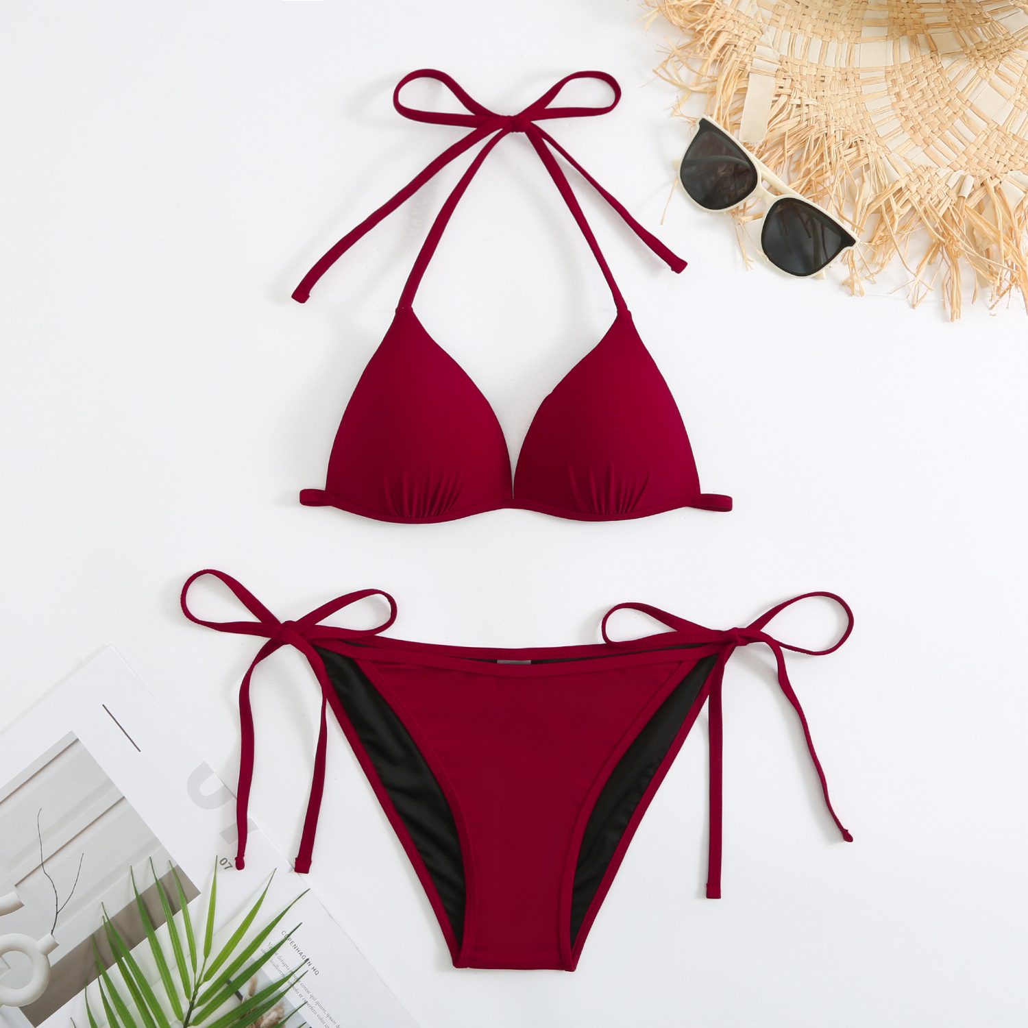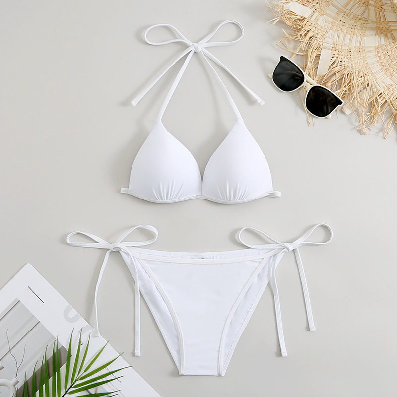2023 새로운 대외 무역 비키니 AliExpress 수영복 여성용 섹시 하드 컵 단색 브리프 스플릿 테더
