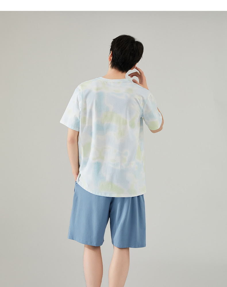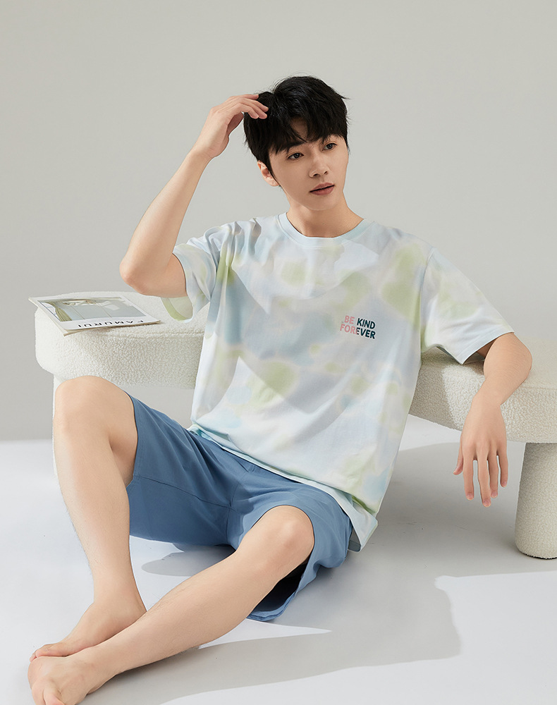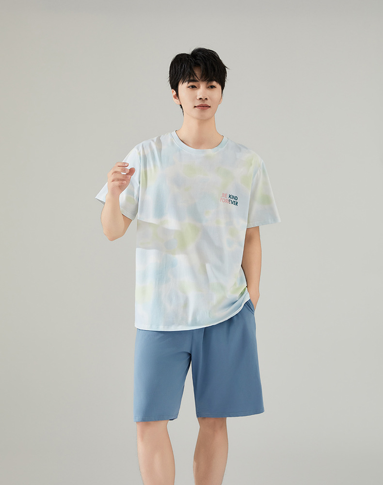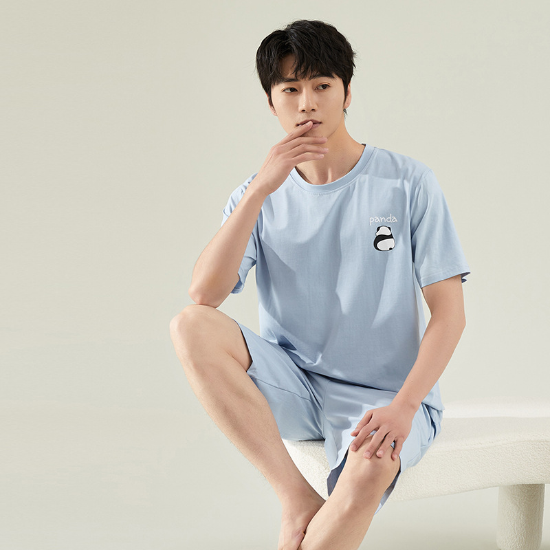 [쿨] 잠옷 남자 여름 면 반팔 반바지 투피스 캐주얼 아웃웨어 남자 가정복 세트