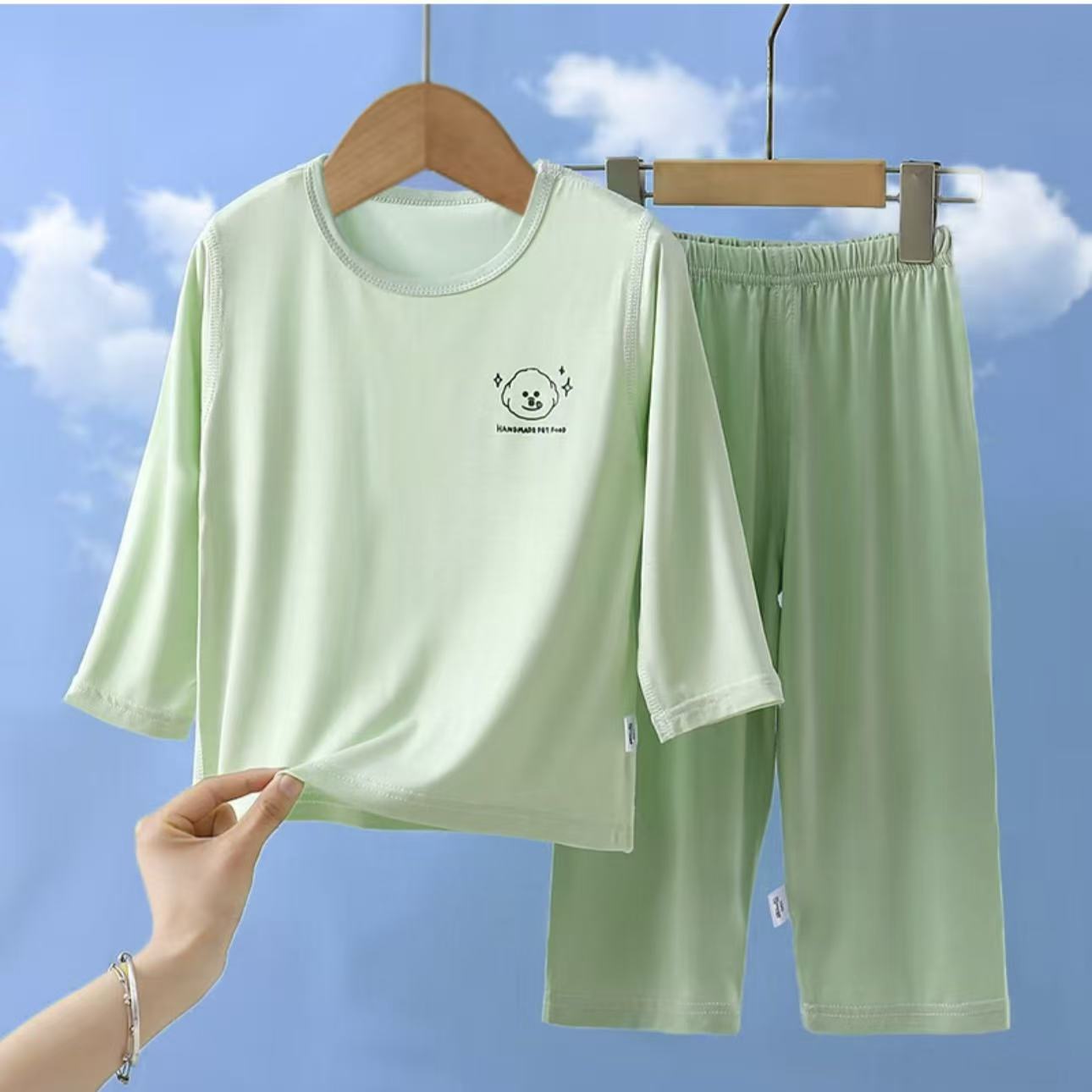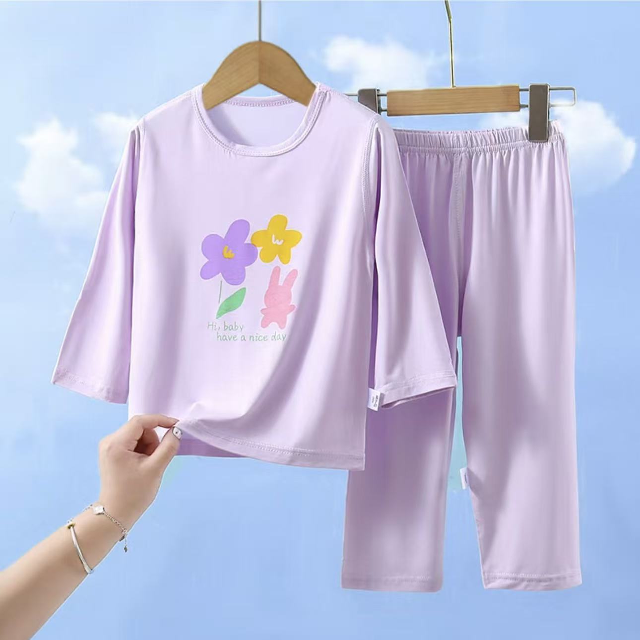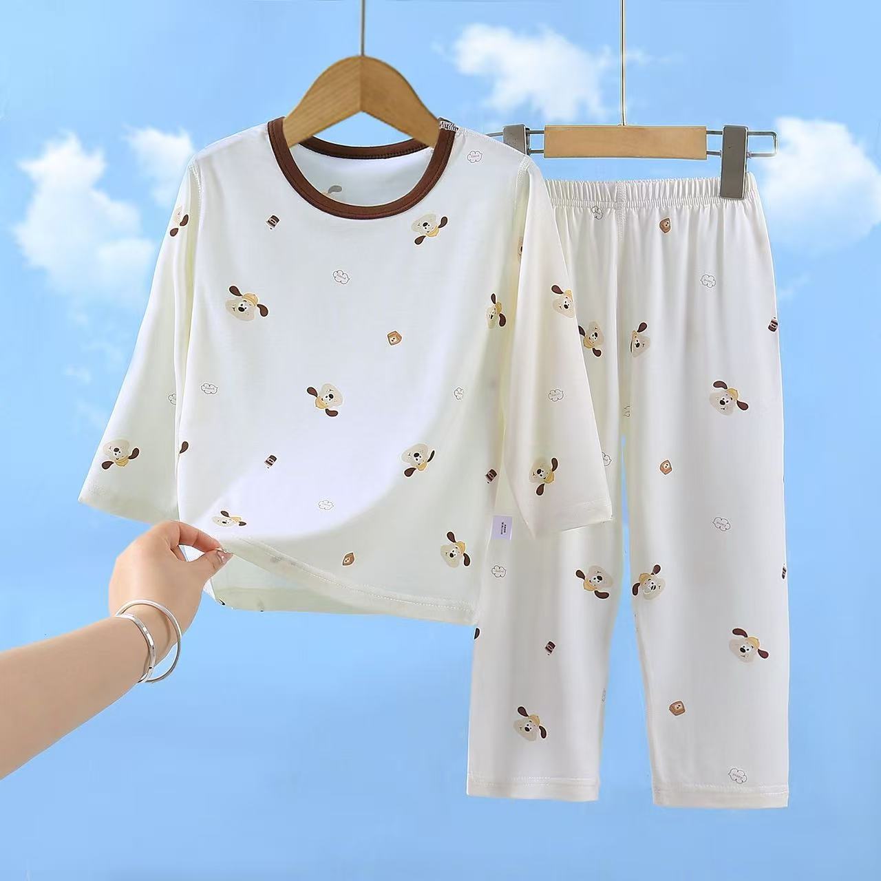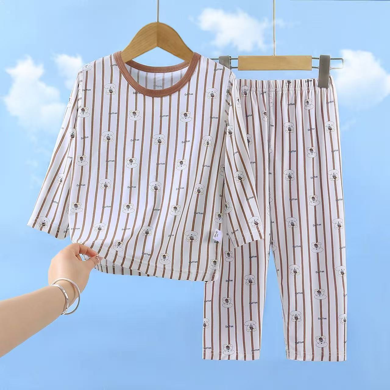유코시 봄과 여름 어린이 9 점 긴팔 가정복 소년과 소녀 귀여운 에어컨 옷 만화 잠옷 세트