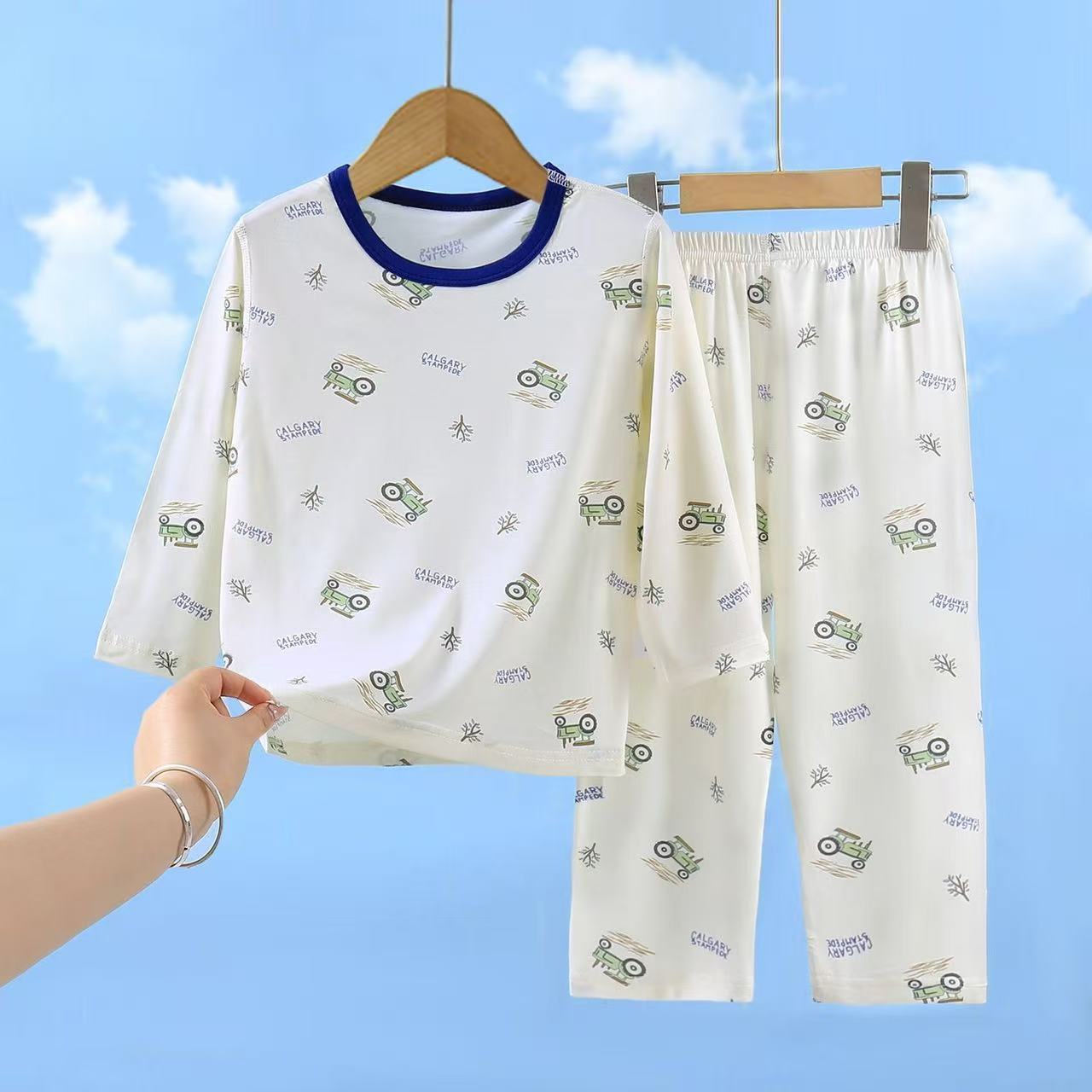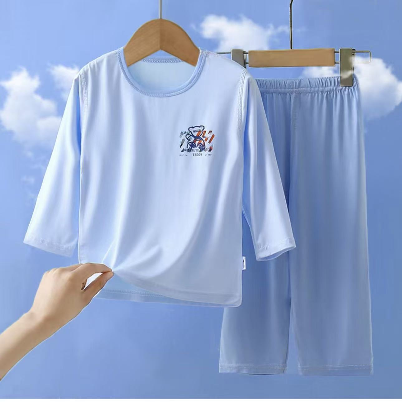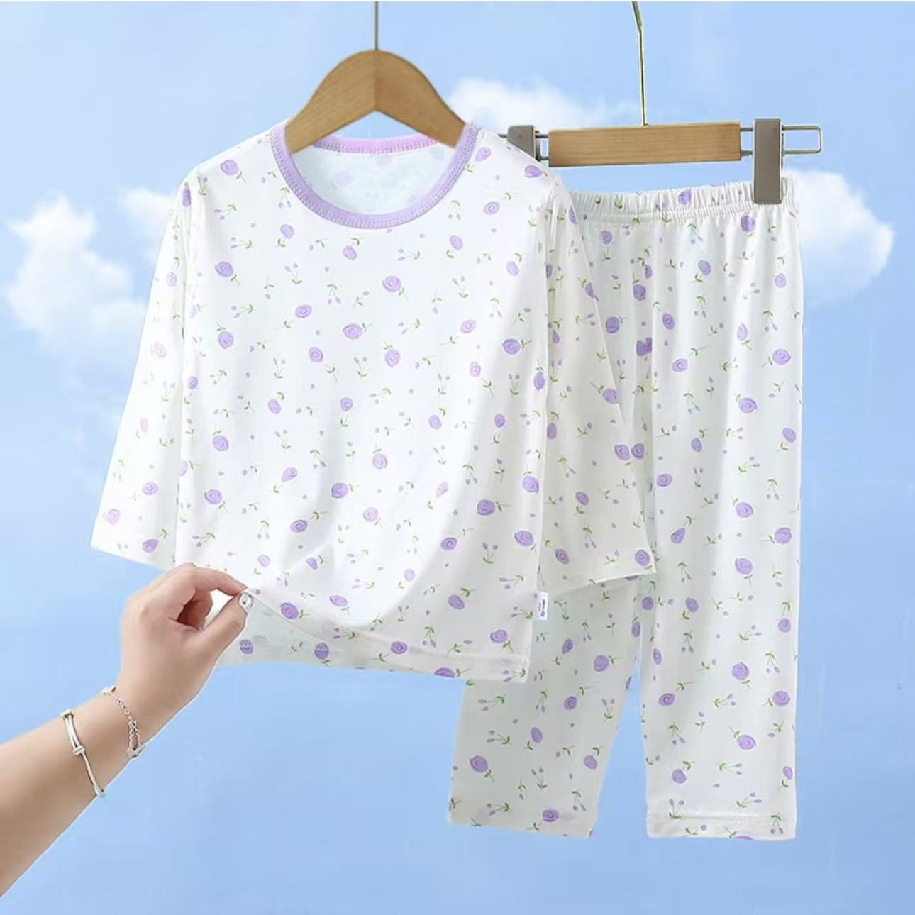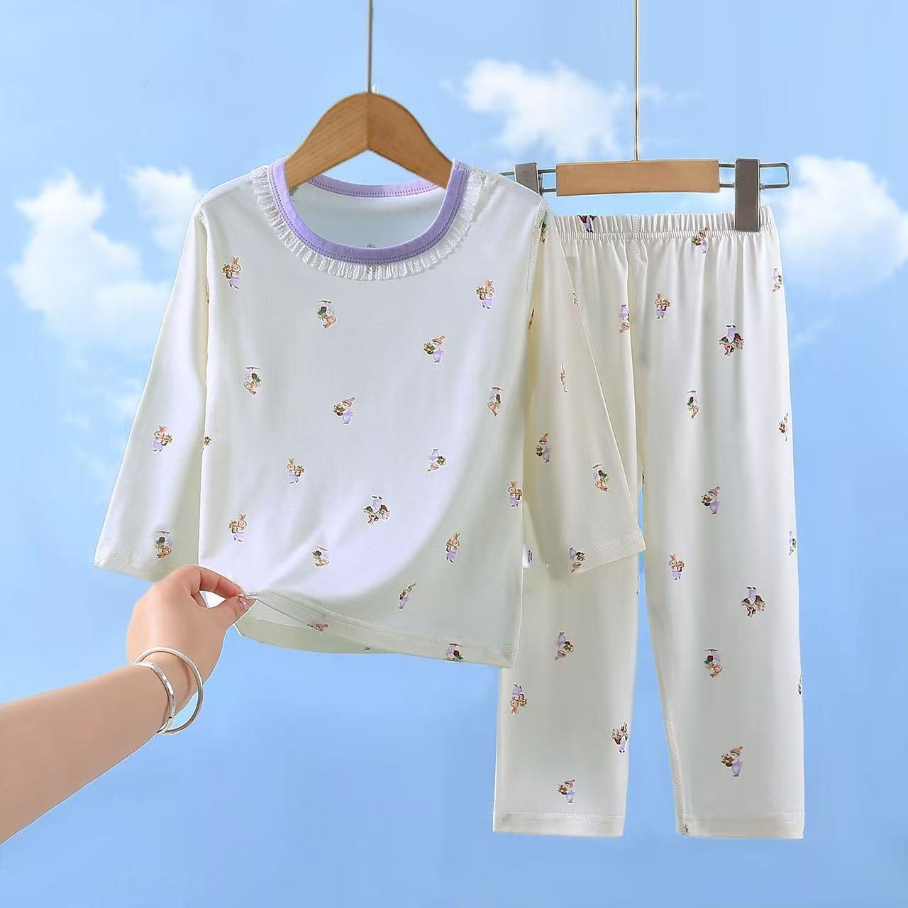유코시 봄과 여름 어린이 9 점 긴팔 가정복 소년과 소녀 귀여운 에어컨 옷 만화 잠옷 세트스토어 가기