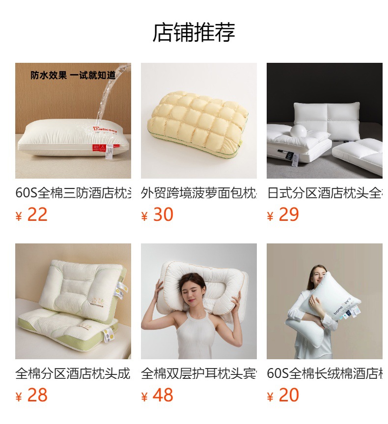 공장 직접 판매 면 2층 직사각형 반추력 베개 코어, 귀에 압력 없음, 세탁 가능한 베개, 생방송 인터넷 연예인 풀 헤드스토어 가기