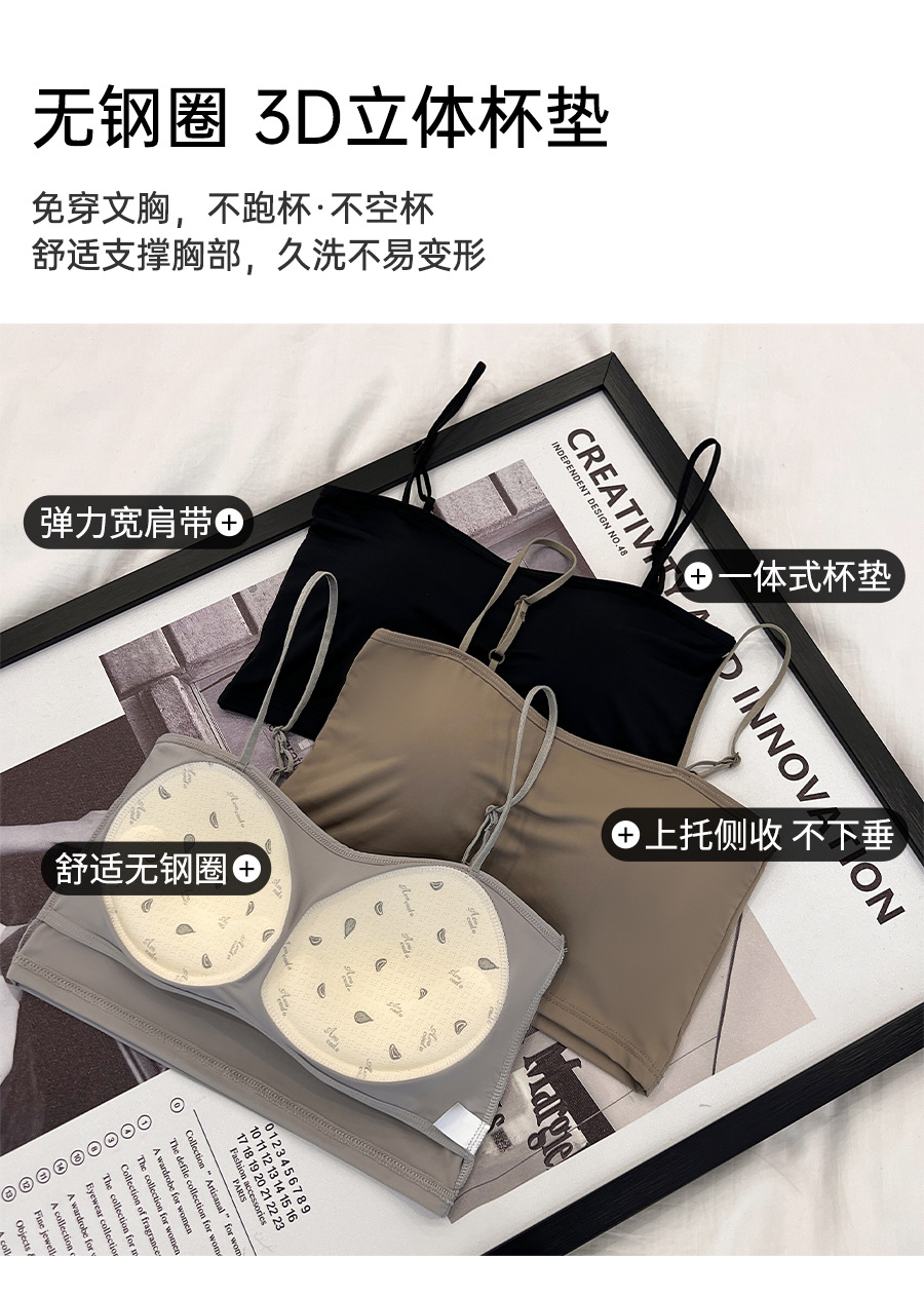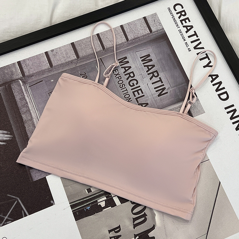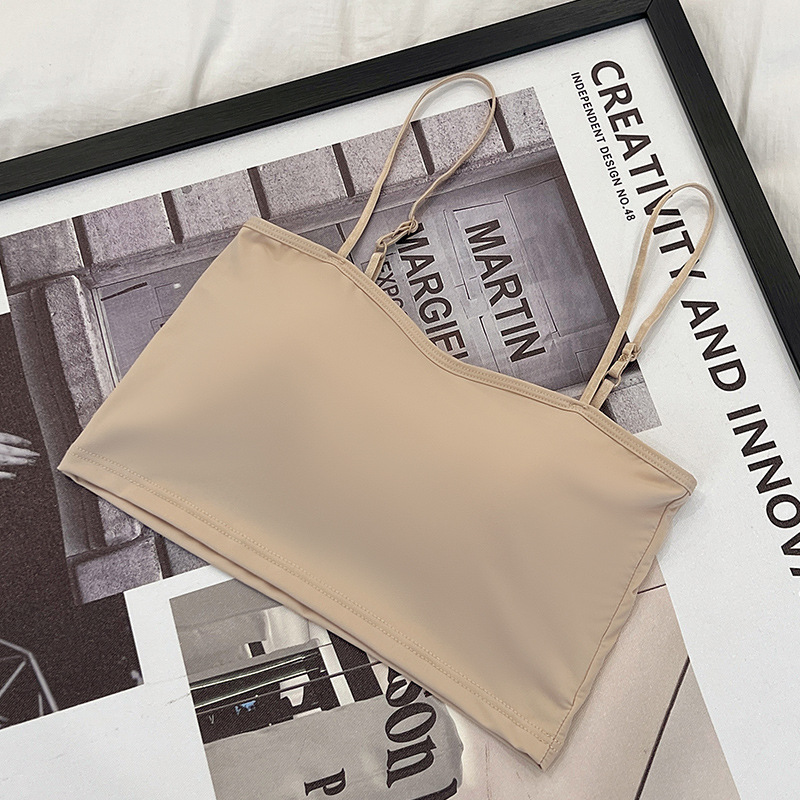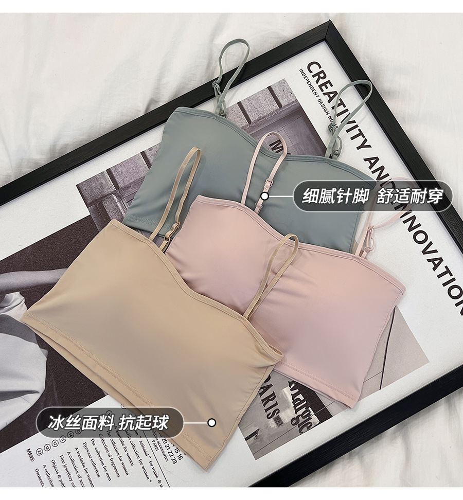 609 가슴 패드가 있는 여성용 아이스 실크 튜브탑 캐미솔, 핫걸이용 외부 착용 가능, 아름다운 등, 올인원 이너웨어, 가슴 감싸기스토어 가기