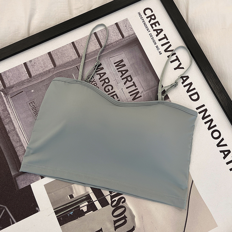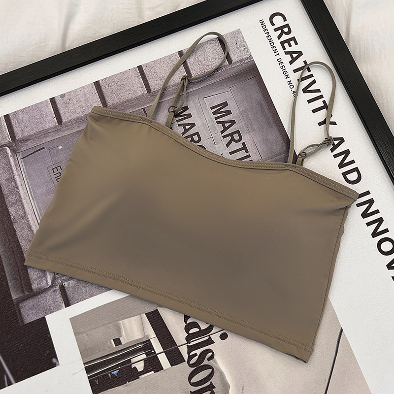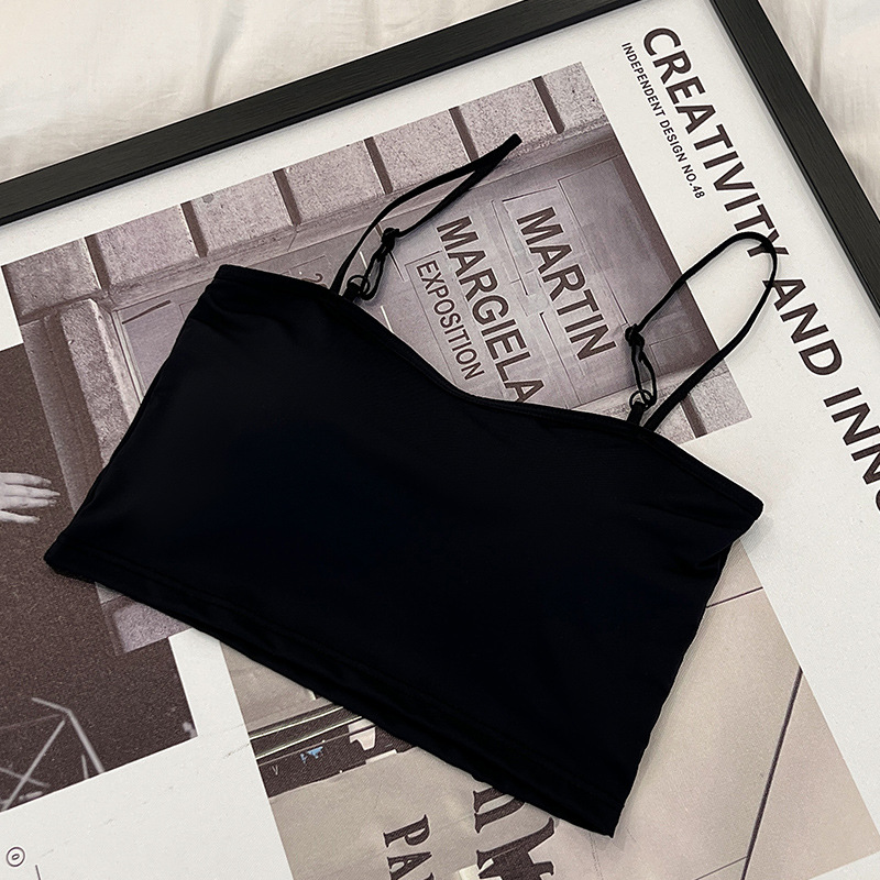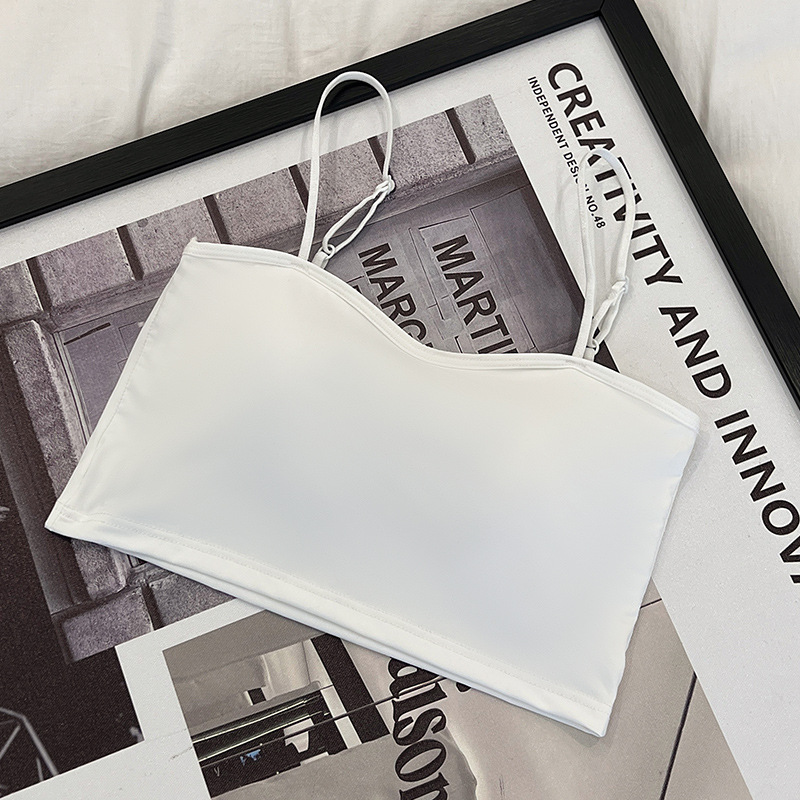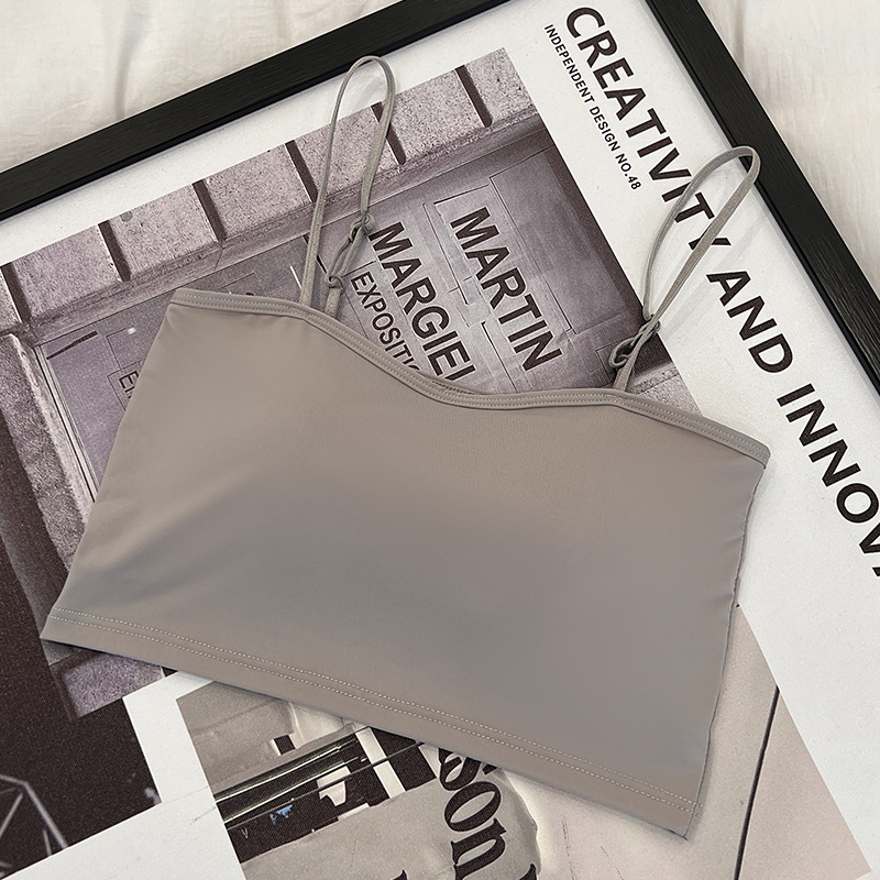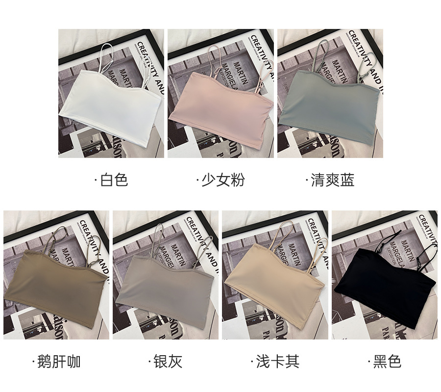 609 가슴 패드가 있는 여성용 아이스 실크 튜브탑 캐미솔, 핫걸이용 외부 착용 가능, 아름다운 등, 올인원 이너웨어, 가슴 감싸기스토어 가기
