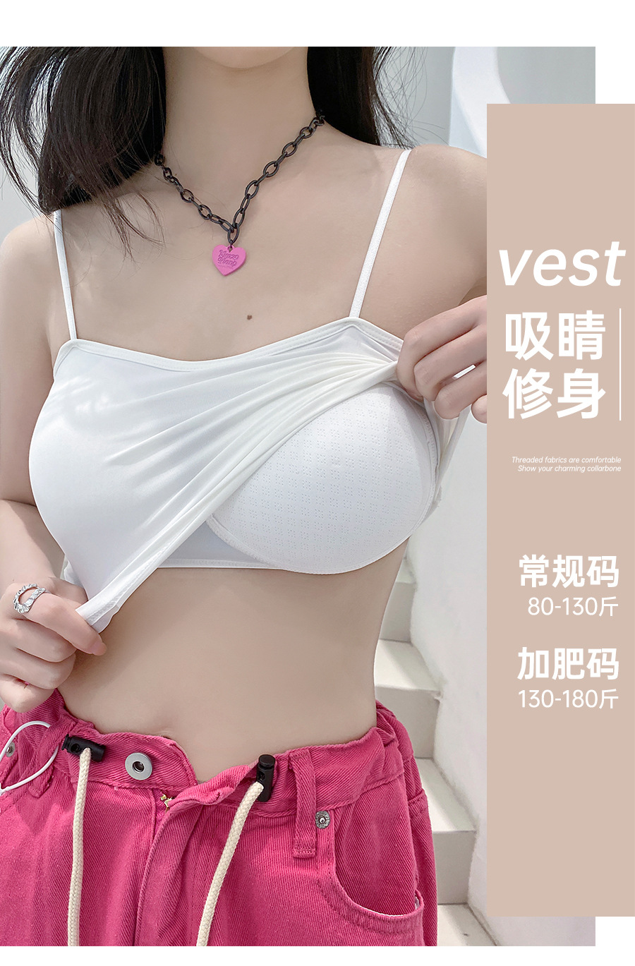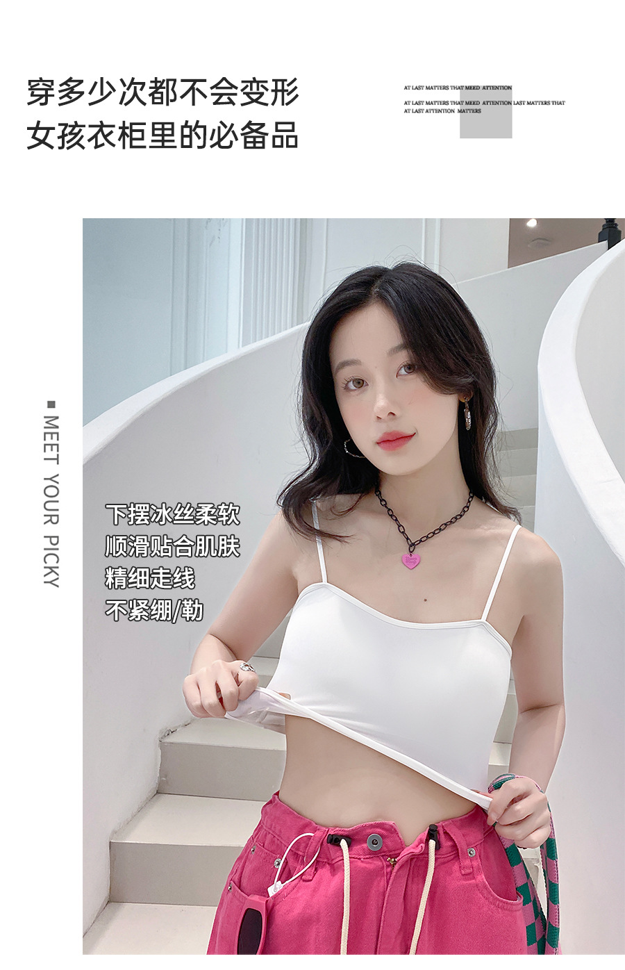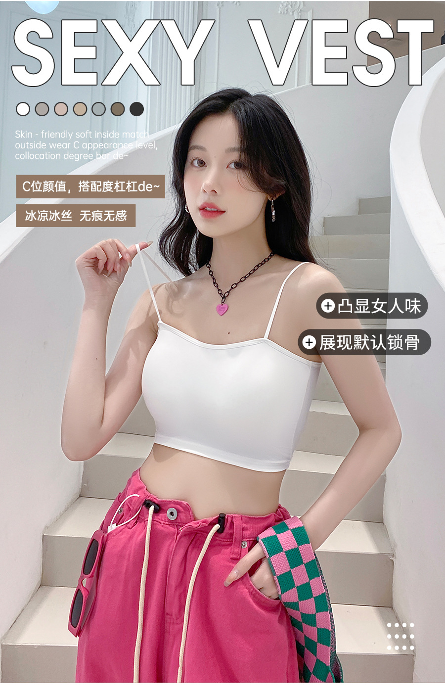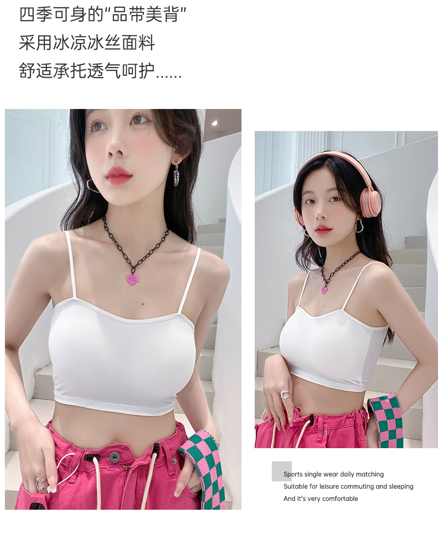 609 가슴 패드가 있는 여성용 아이스 실크 튜브탑 캐미솔, 핫걸이용 외부 착용 가능, 아름다운 등, 올인원 이너웨어, 가슴 감싸기