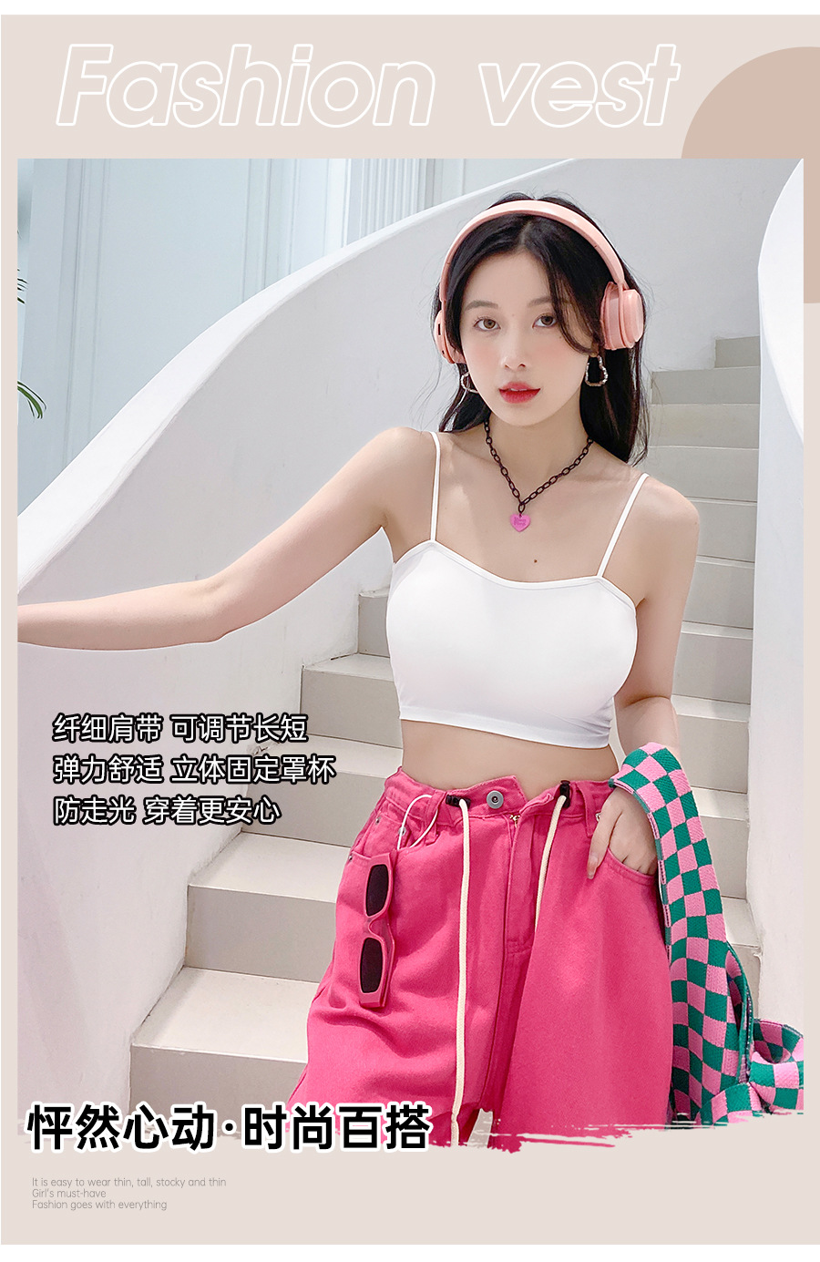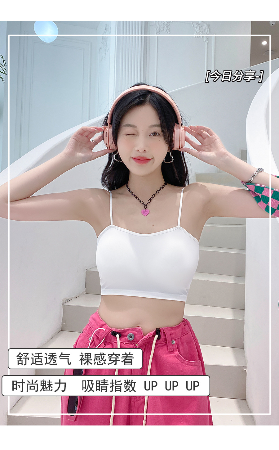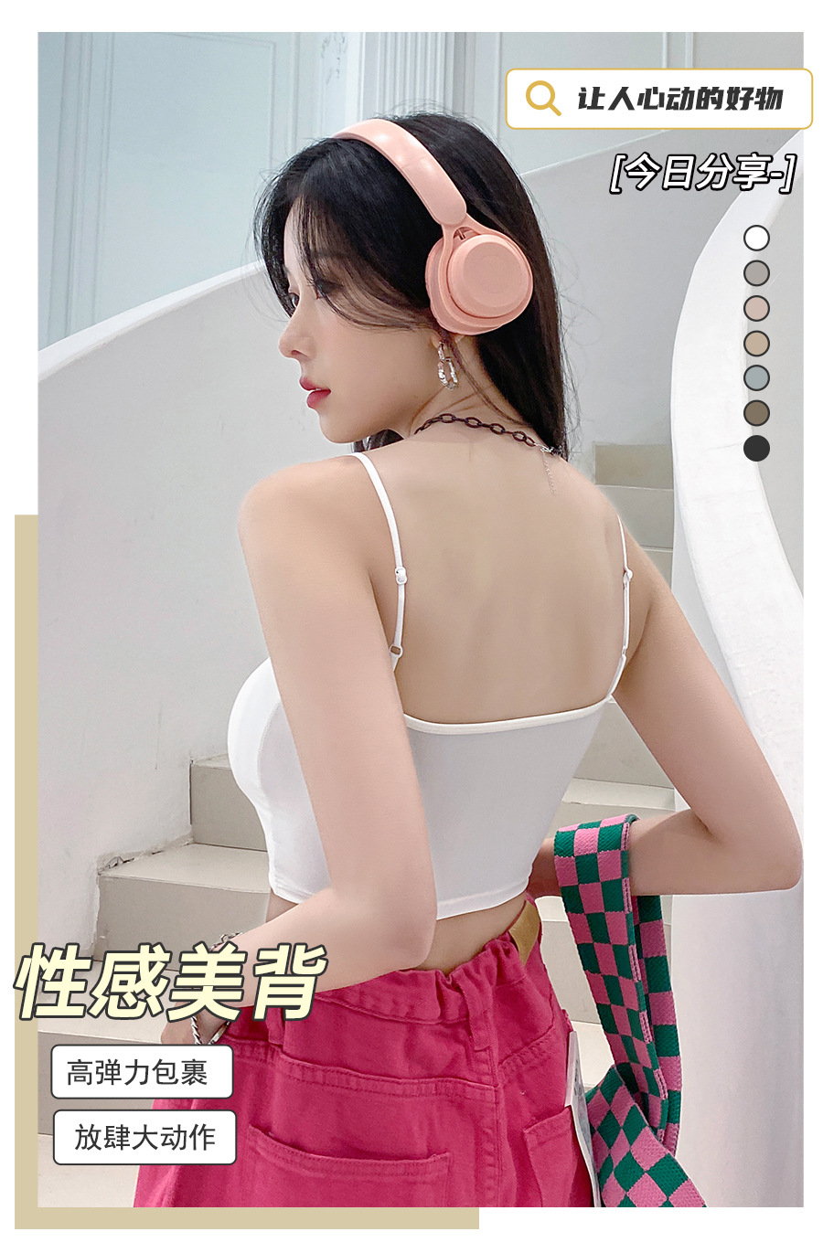 609 가슴 패드가 있는 여성용 아이스 실크 튜브탑 캐미솔, 핫걸이용 외부 착용 가능, 아름다운 등, 올인원 이너웨어, 가슴 감싸기