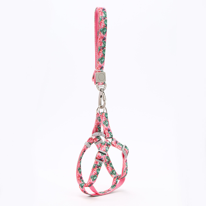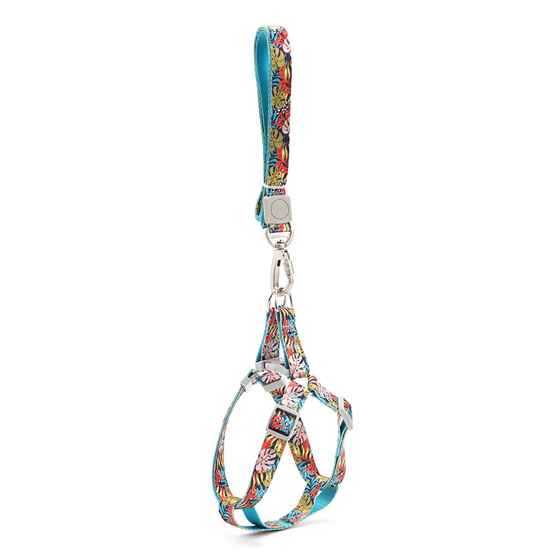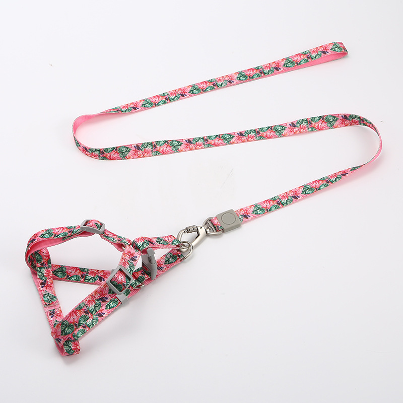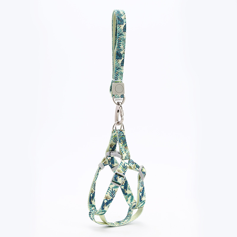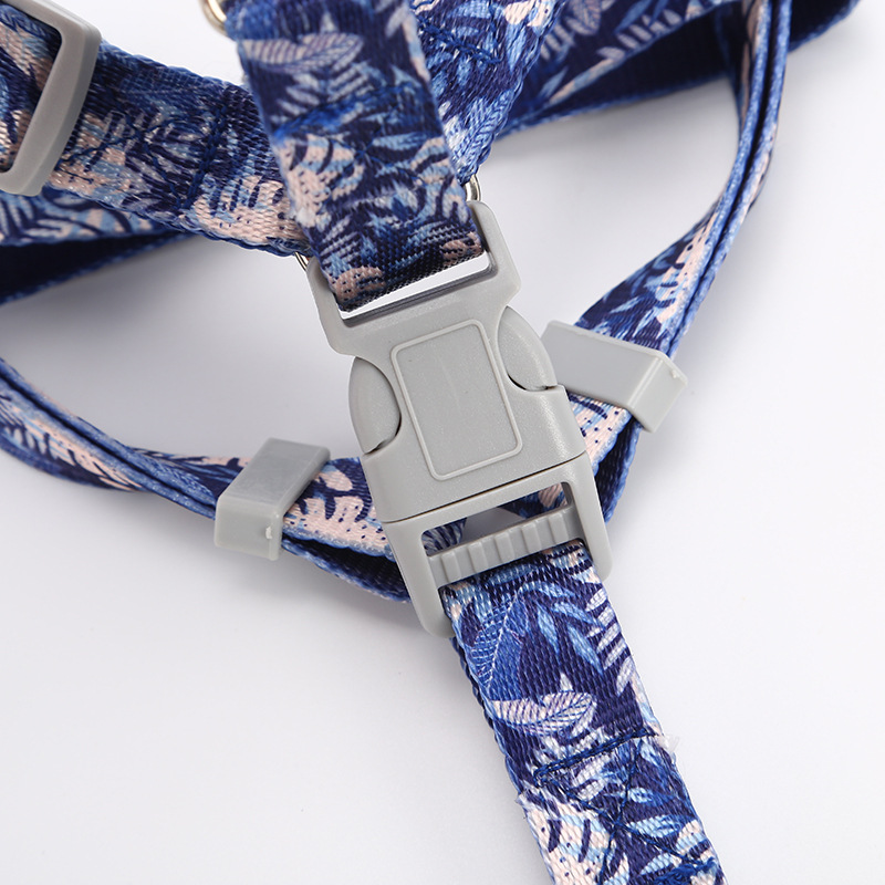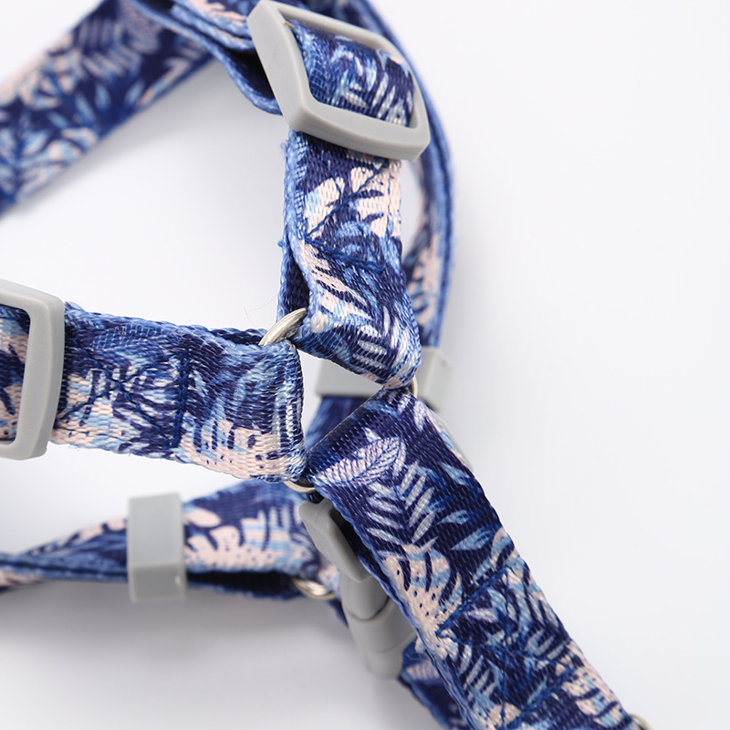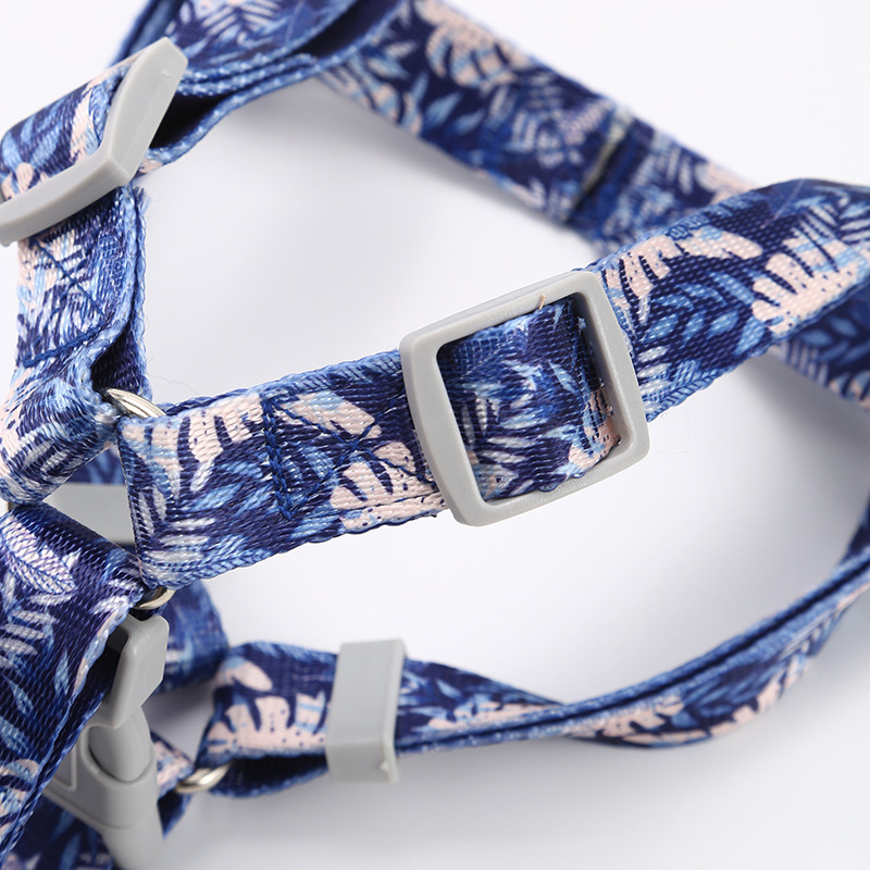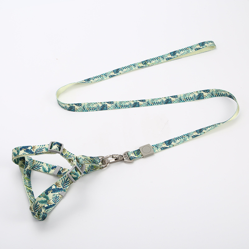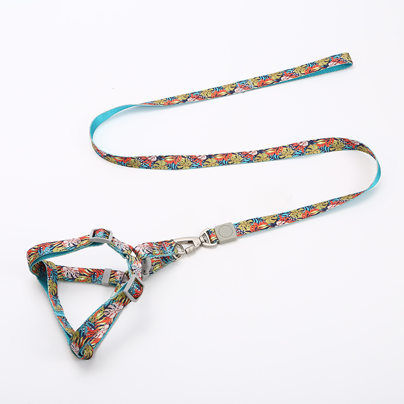 국경 간 새로운 애완 동물 가슴 스트랩 열대 우림 프린트 조끼 가슴 스트랩 펀칭 방지 개 로프 개 가죽 끈