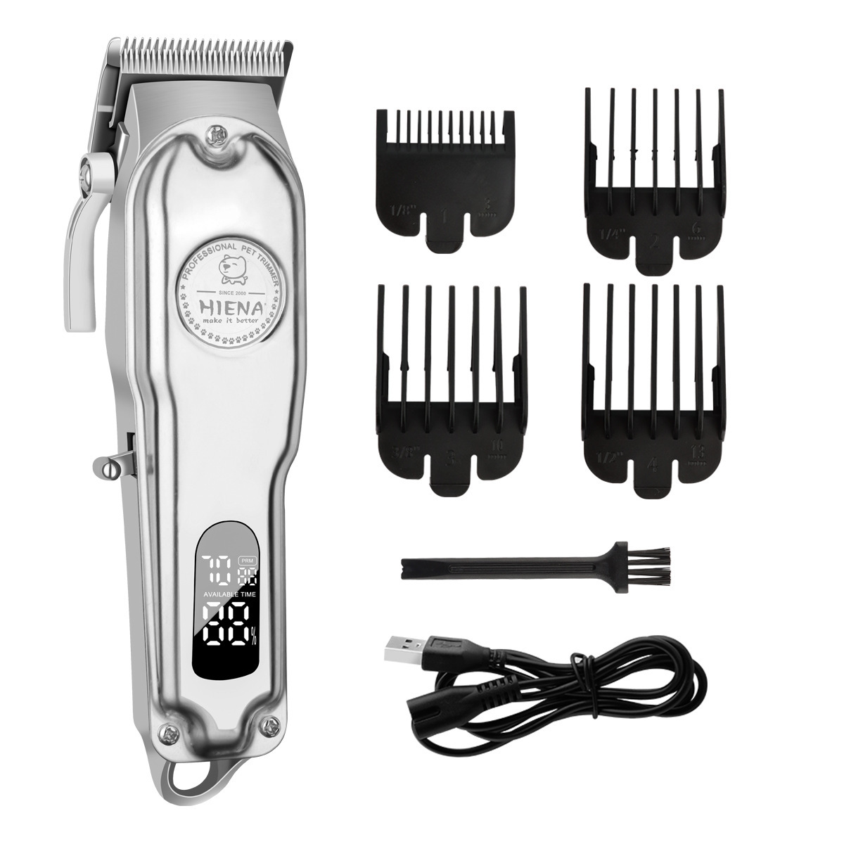 产品配件:包装盒、说明书、四个限位梳、一个充电器(可换美规欧规英规澳规或USB线)、(一瓶润滑油 跨境出口是没有 需要请备注)、一根清洁刷