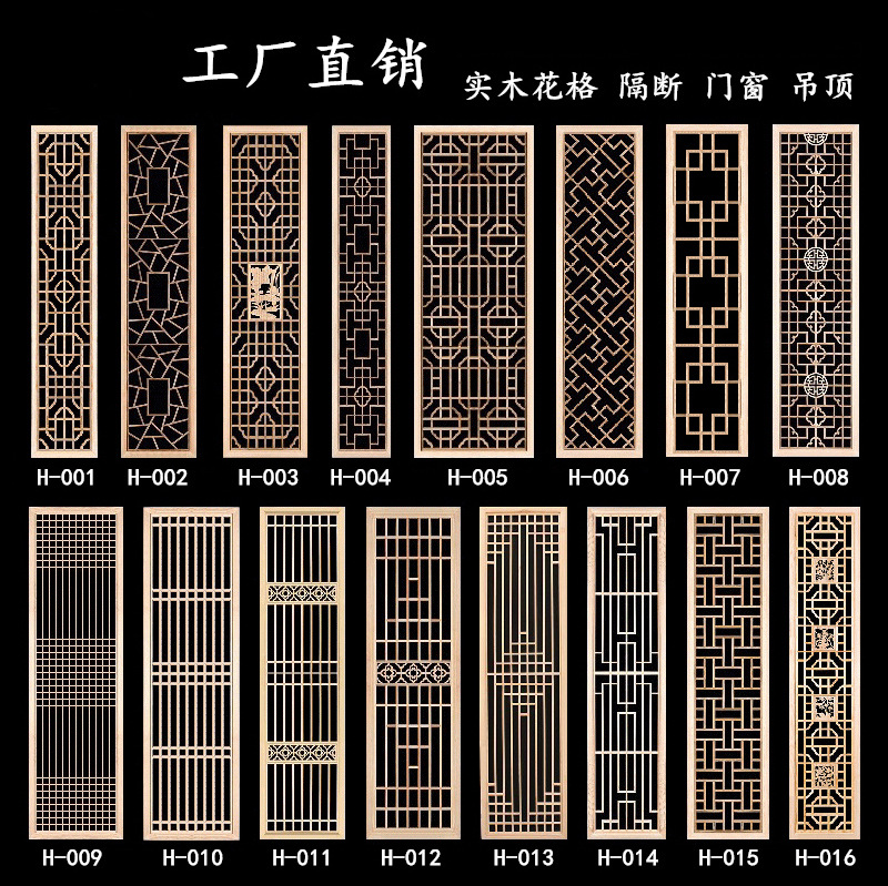 동양 나무 조각 단단한 나무 격자 새로운 중국 스크린 입구 파티션 중공 양면 조각 나무 그릴 골동품 문 및 창문