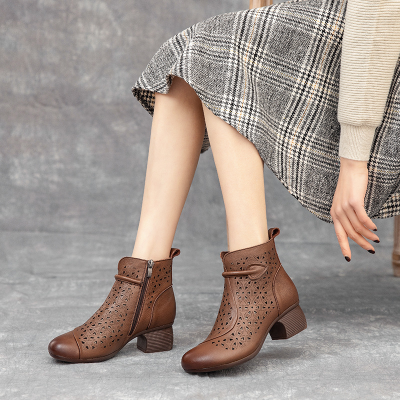 2026 봄 여름 신상품 1층 소가죽 펀칭 부츠, 통풍성 있는 쿨 부츠, 하이힐, 레트로 마틴 부츠 여성용