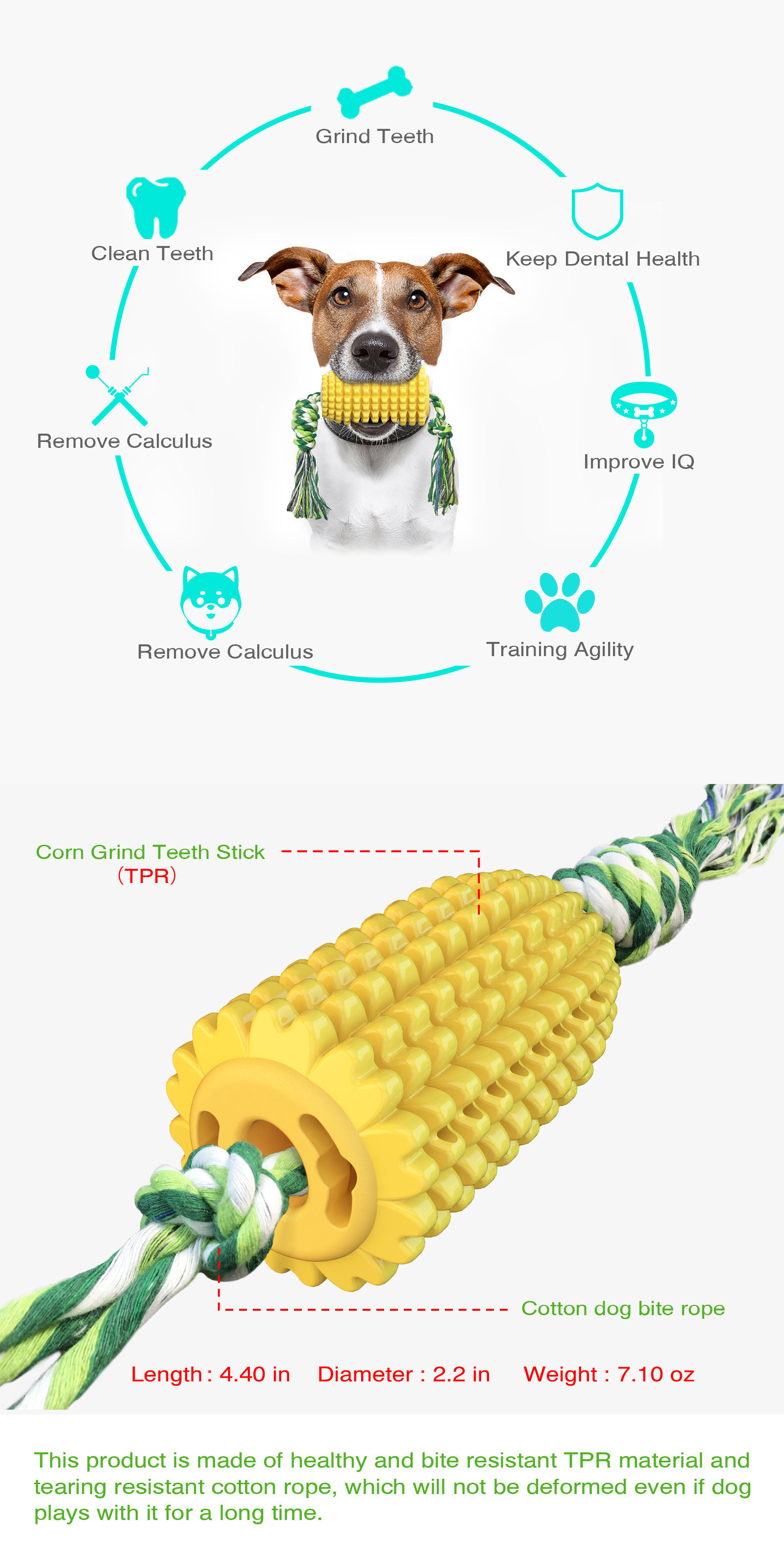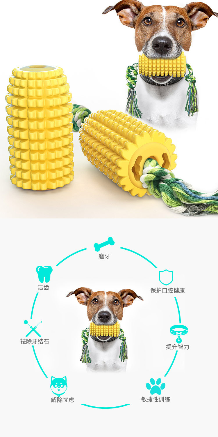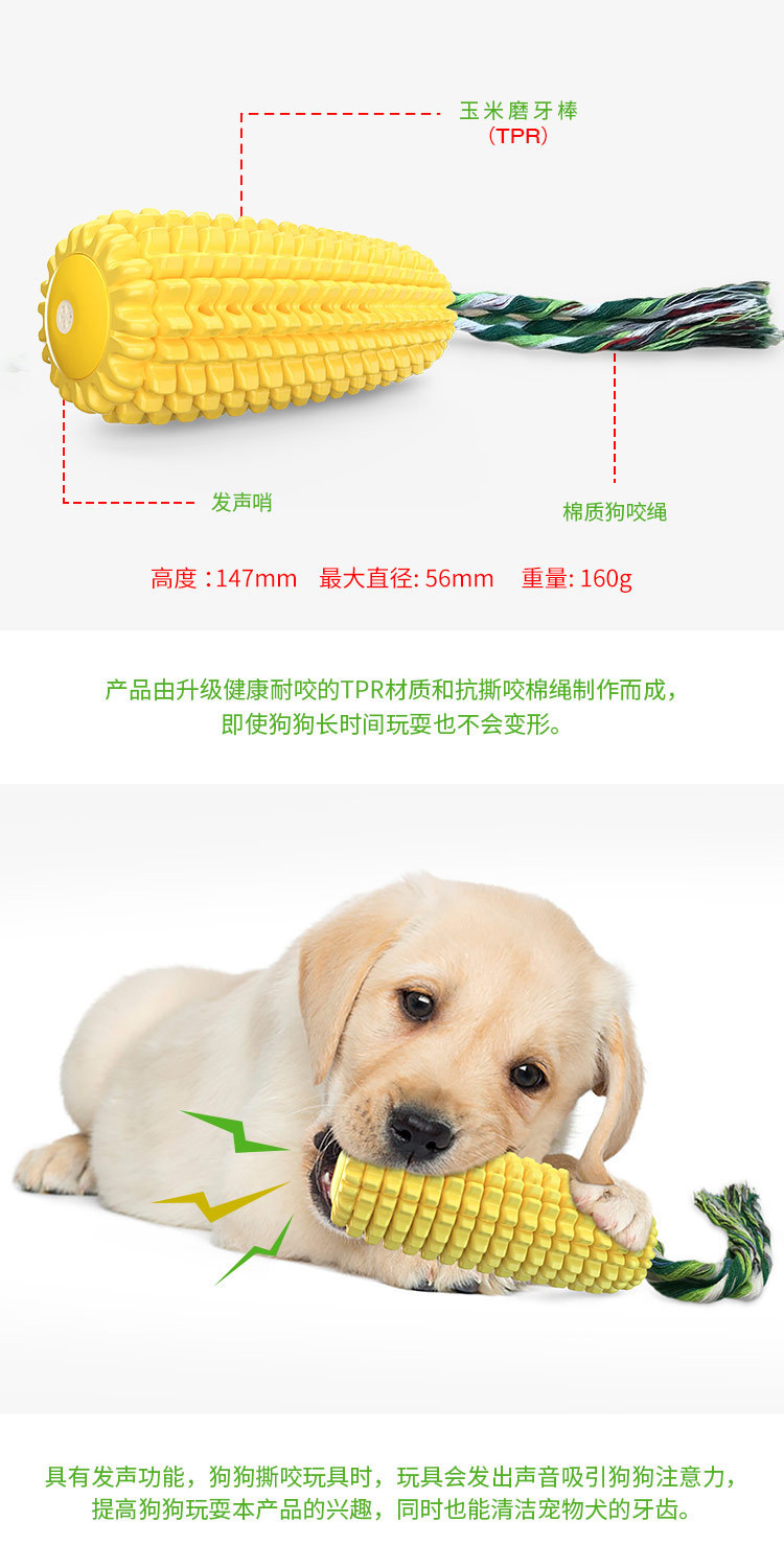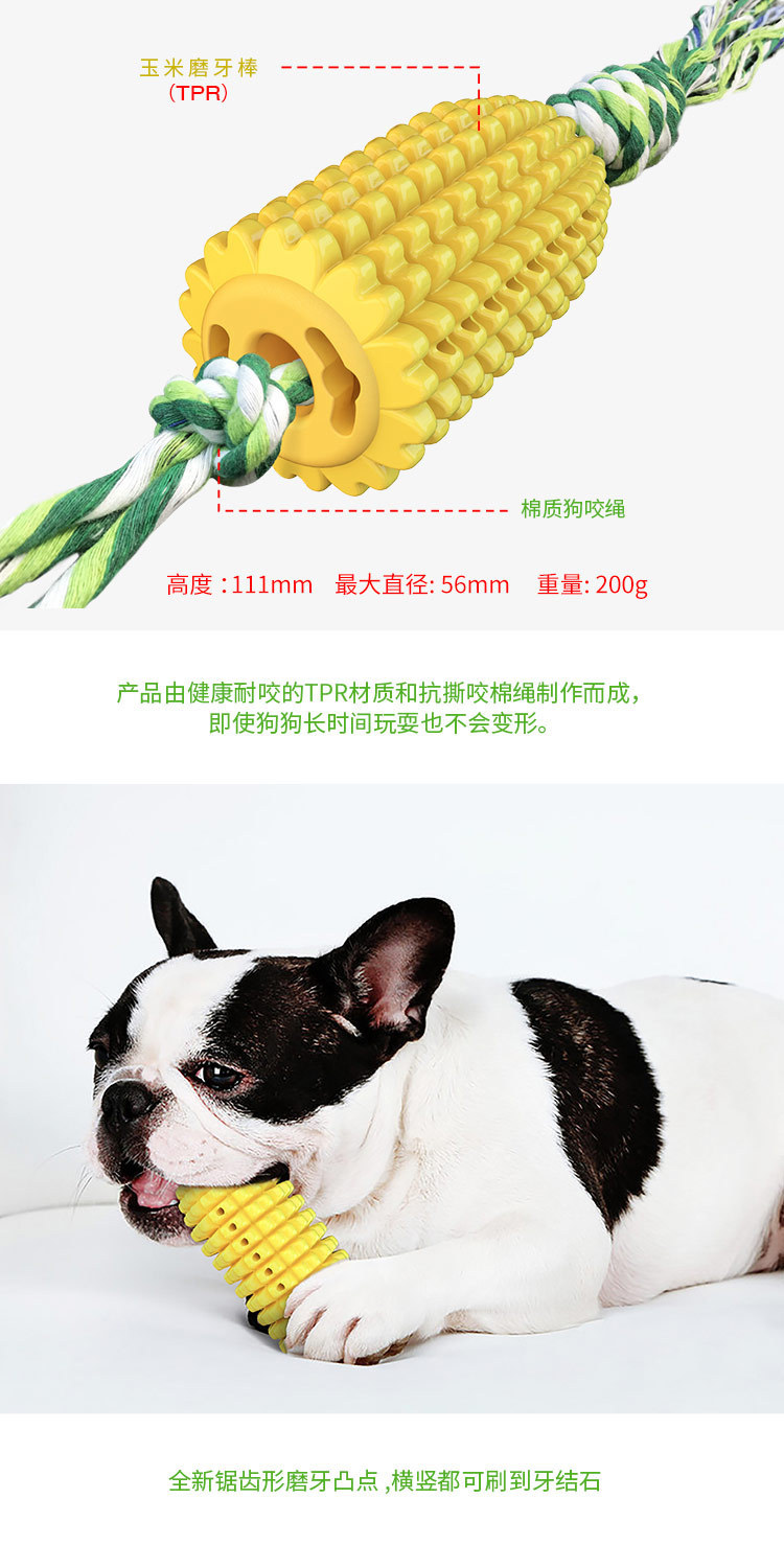 국경을 넘는 인기 애완동물 장난감, 소리나는 옥수수 치아 청소 및 이갈이 스틱, 강아지 칫솔, 면 로프 장난감, TPR 고양이 및 강아지 장난감