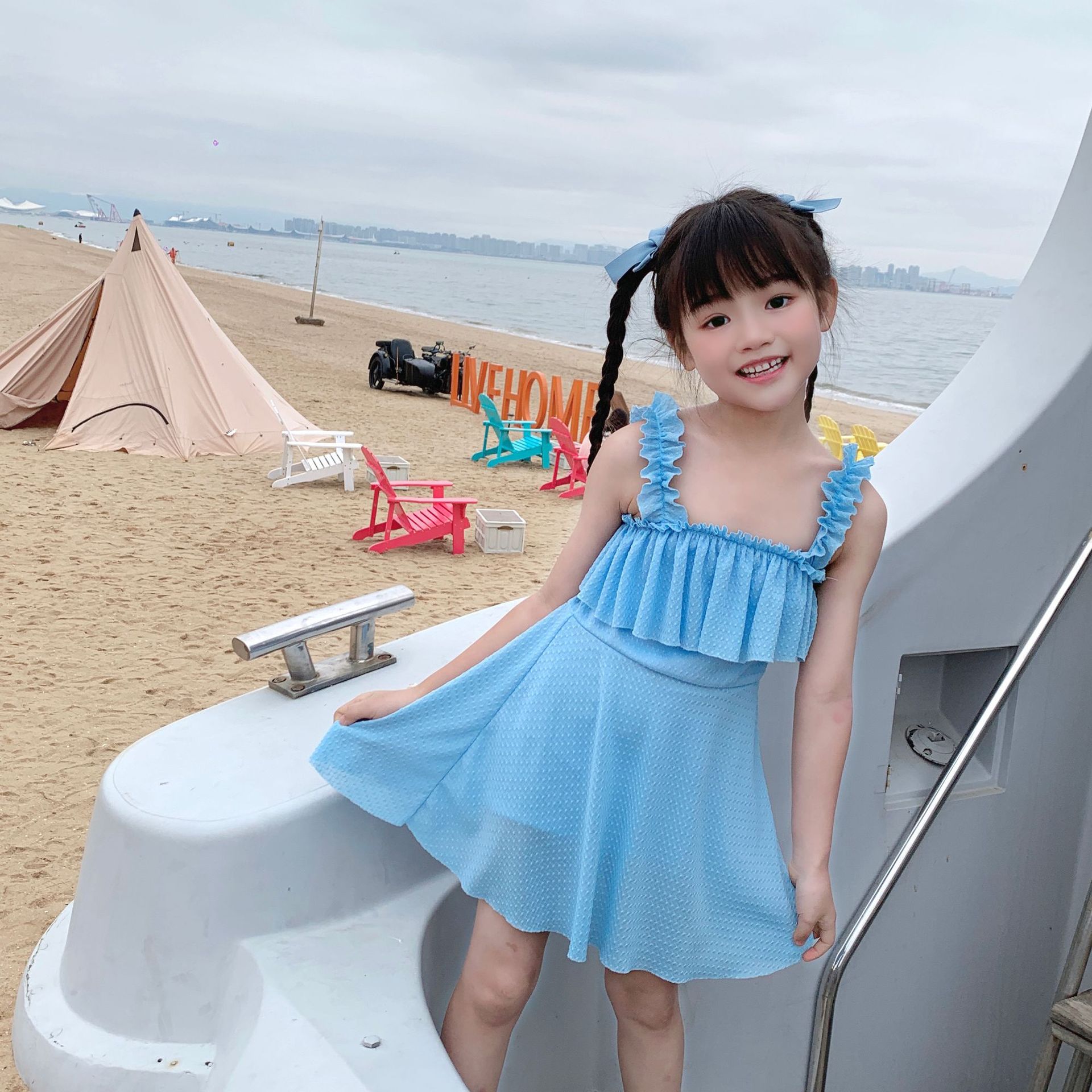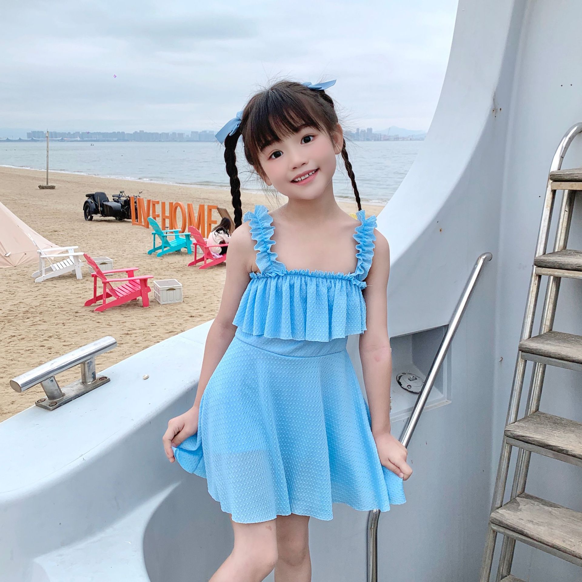 어린이 수영복 소녀 중간 및 큰 어린이 새로운 원피스 소녀 공주 수영복 아기 온천 수영복 어린이 수영복스토어 가기