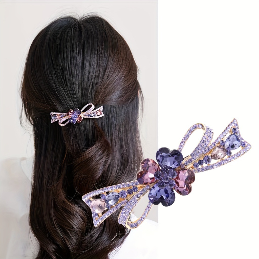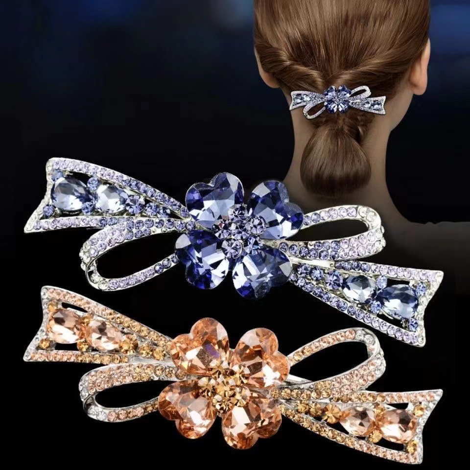 새로운 머리핀 꽃 탑 클립 봄 클립 대형 클립 네 잎 클로버 머리핀 라인 석 모자 한국 성인 보석