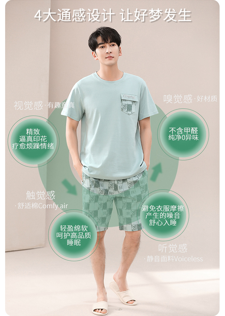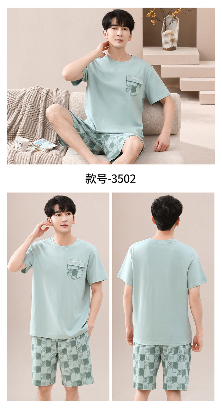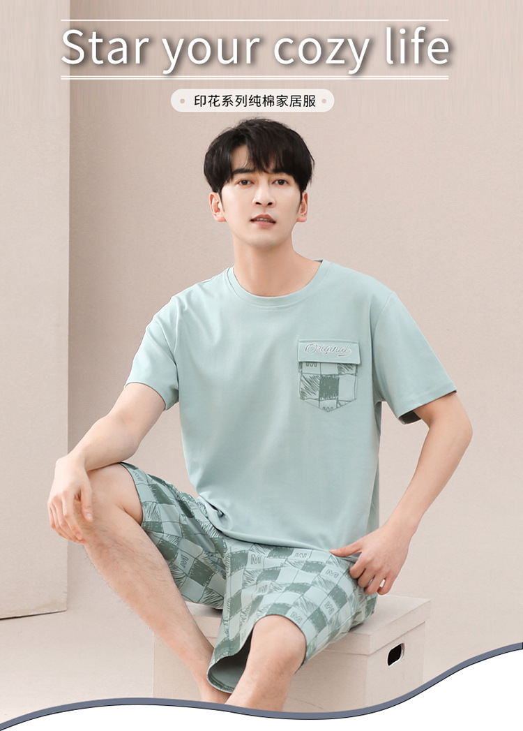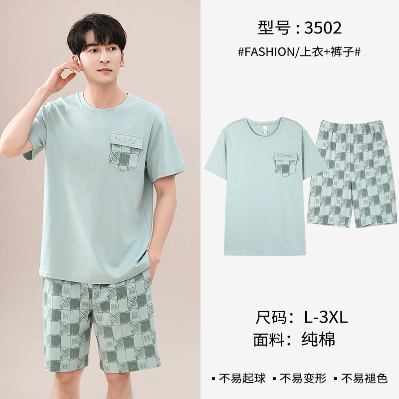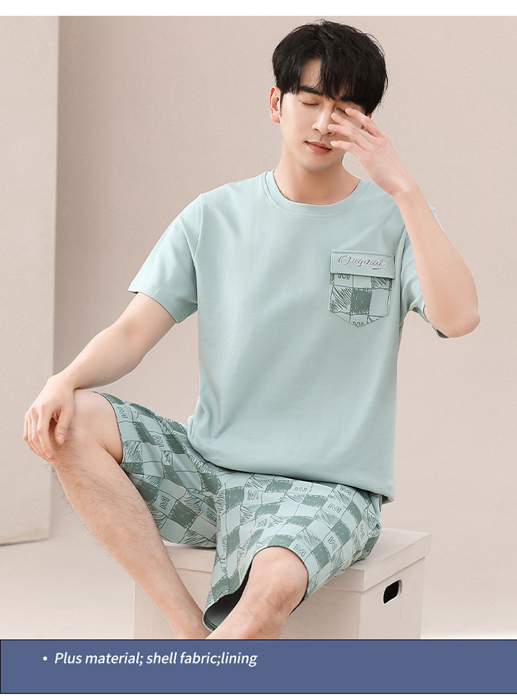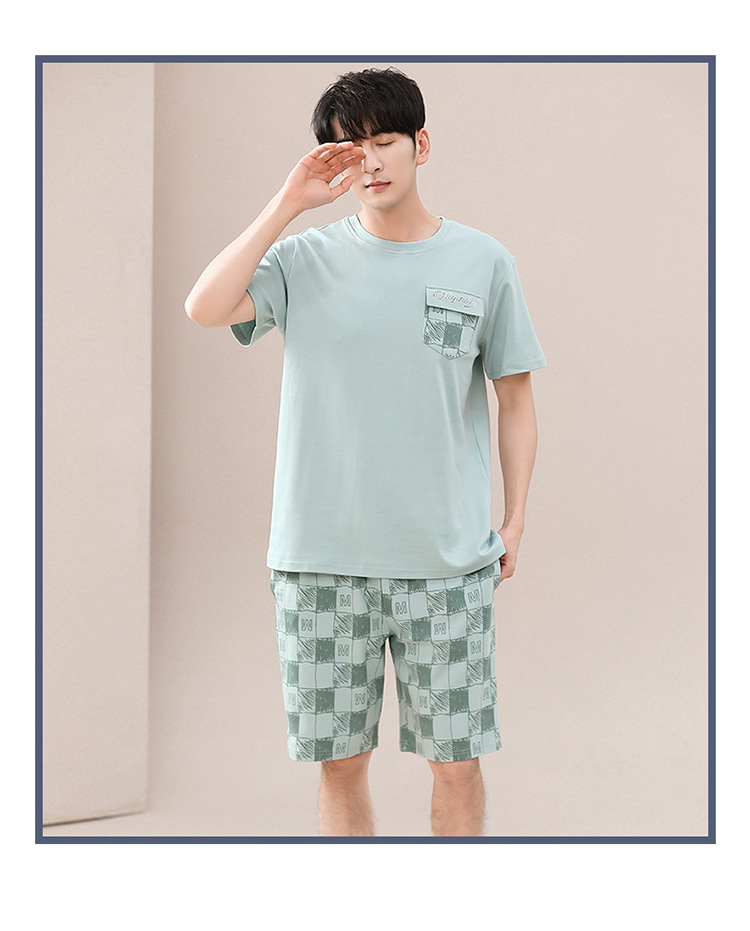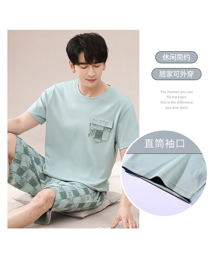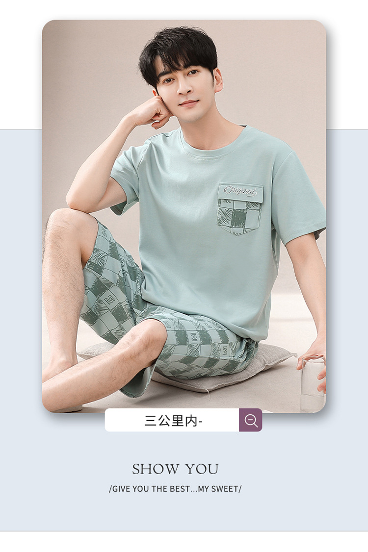 남자의 면 잠옷 여름 새로운 니트 면 반팔 반바지 남자의 라운드 넥 얇은 반팔 가정 의류스토어 가기