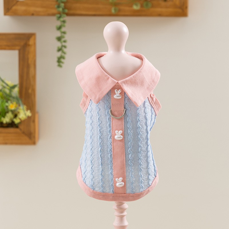 봄과 여름 단색 폴로 셔츠 작은 개 얇은 통기성 티셔츠 고양이 조끼 테디 두 다리 의류 애완 동물 의류스토어 가기