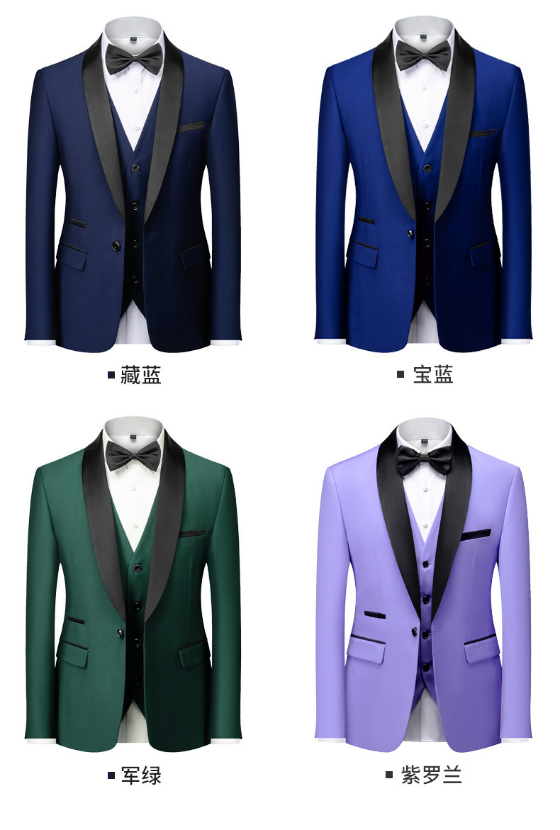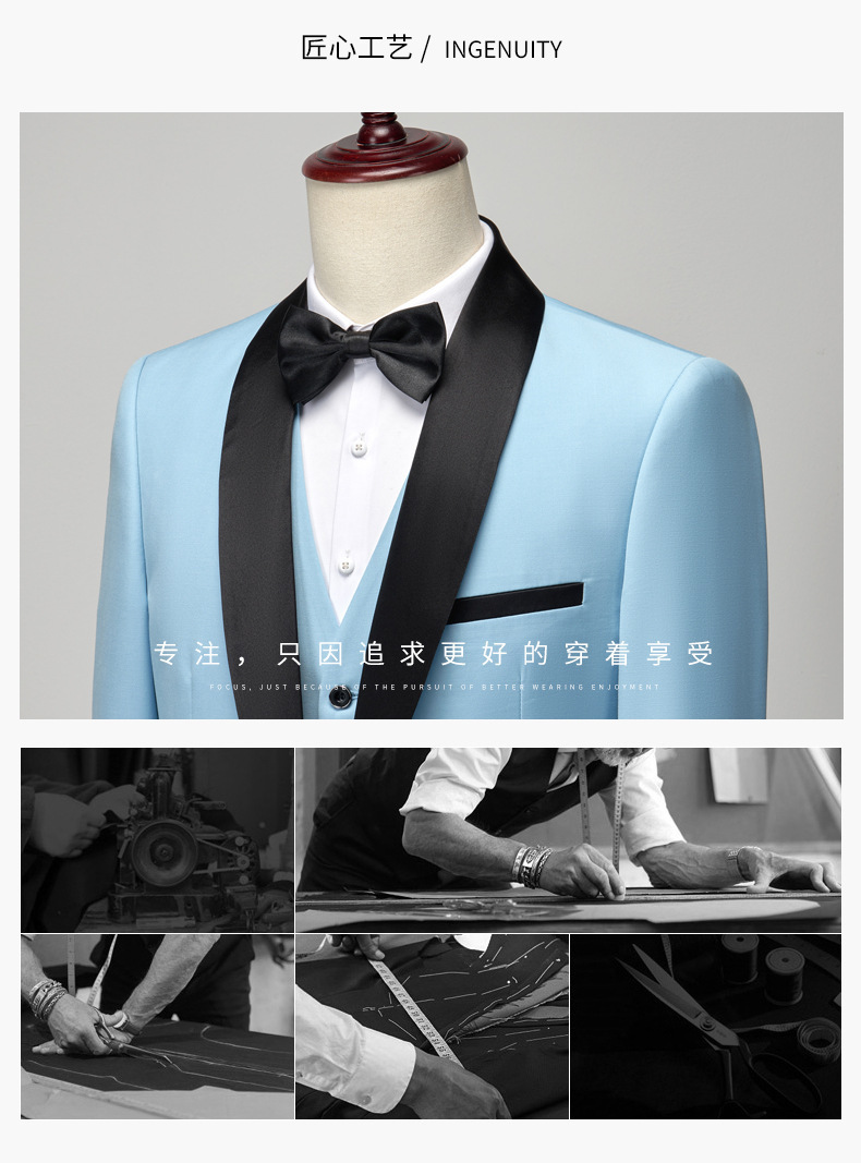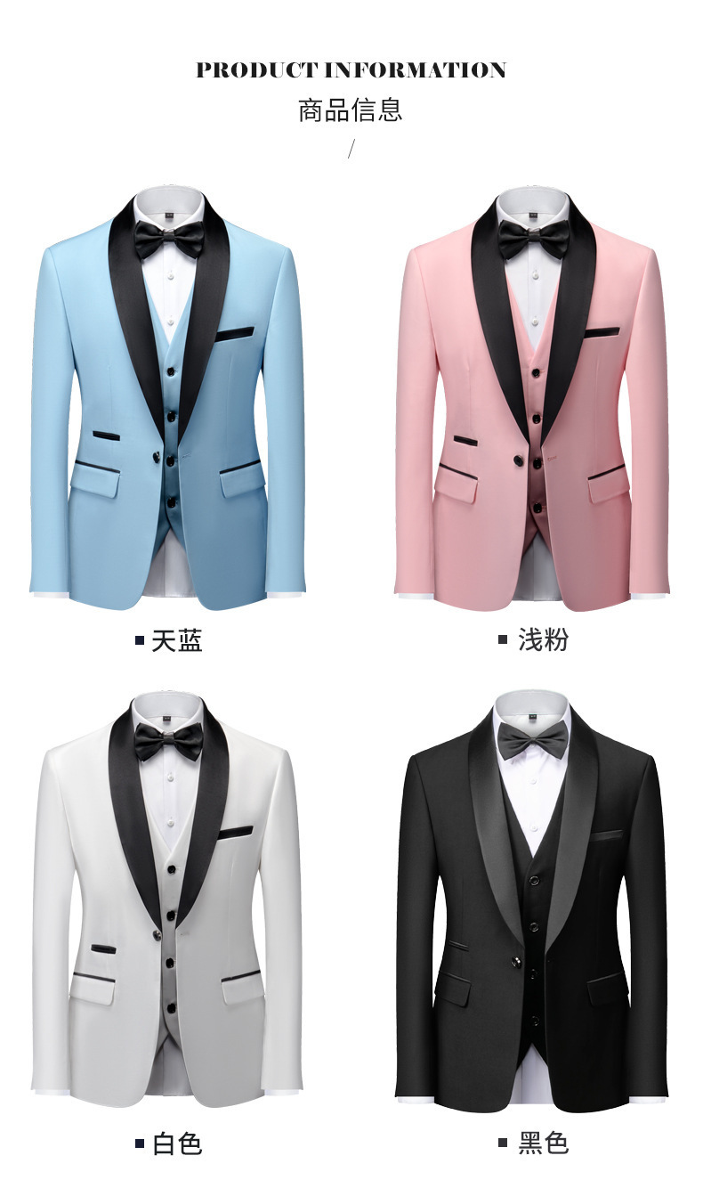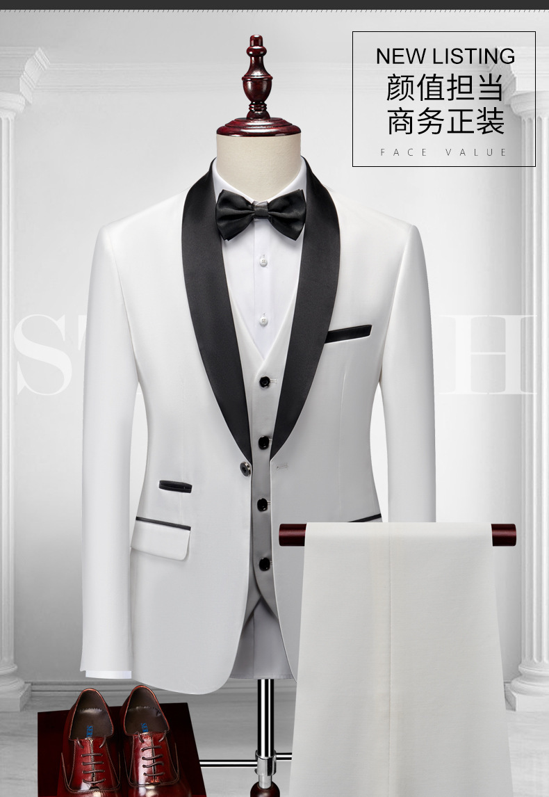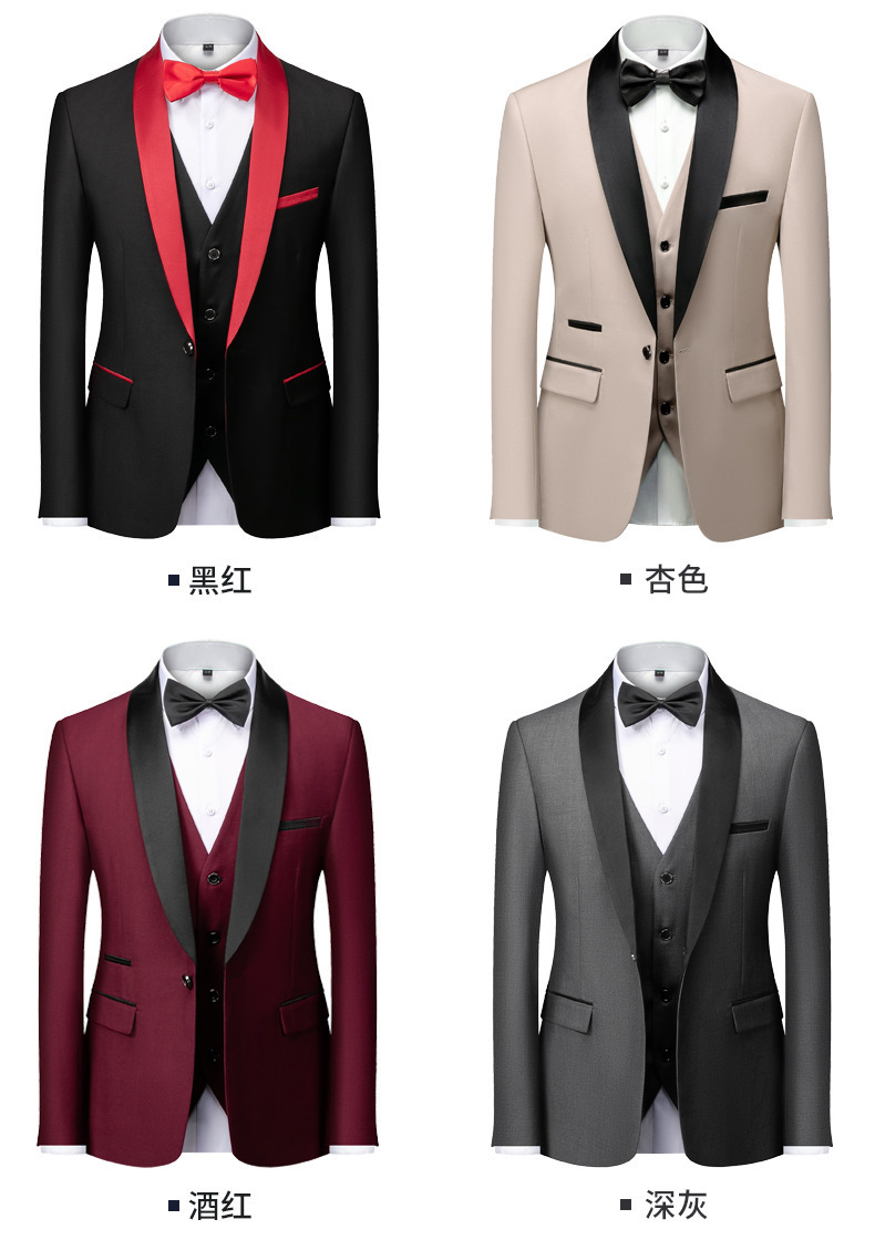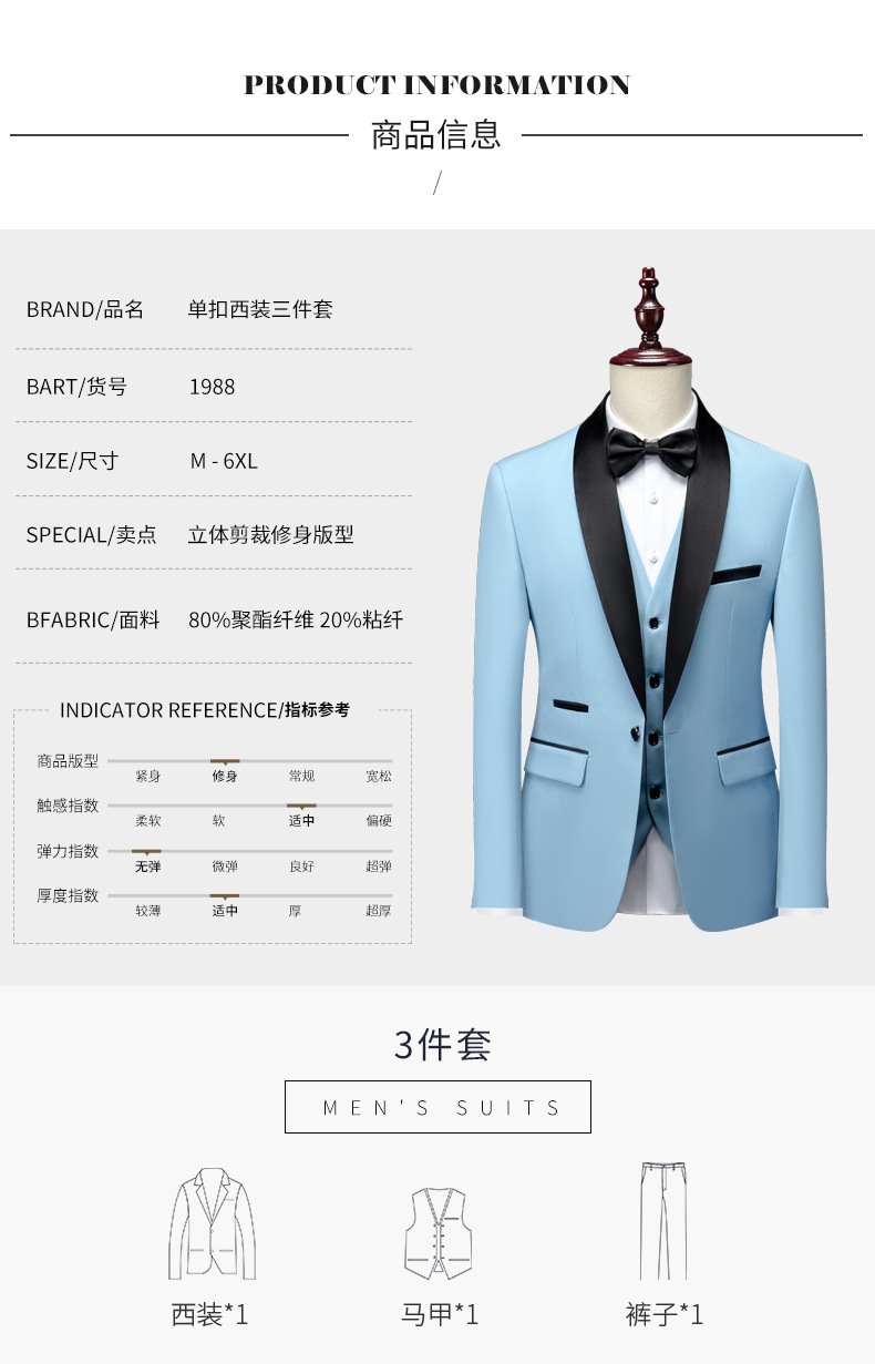 跨境新款男士商务休闲西服套装男结婚司仪礼服馆大码西装三件套男