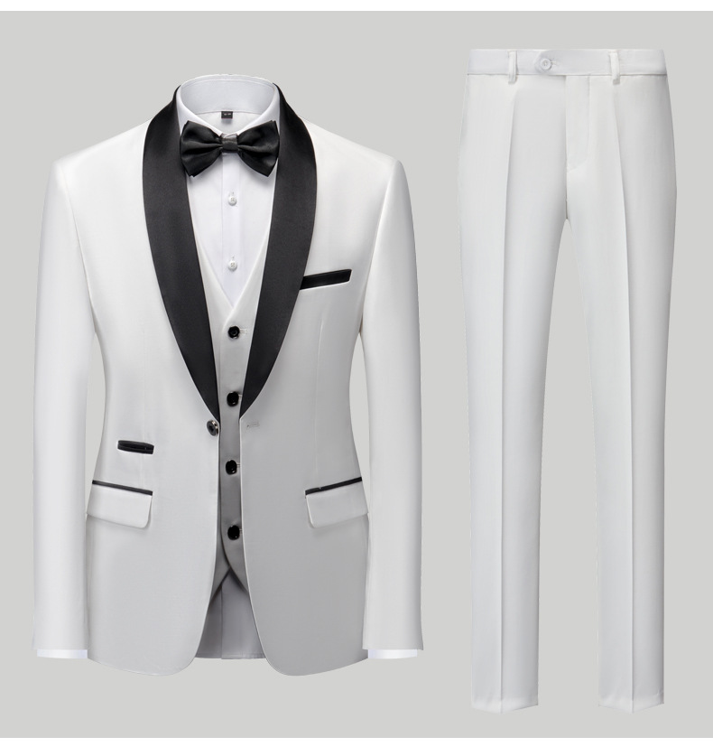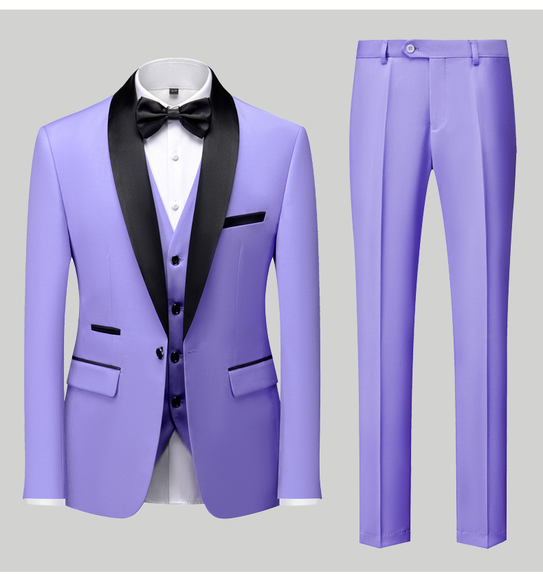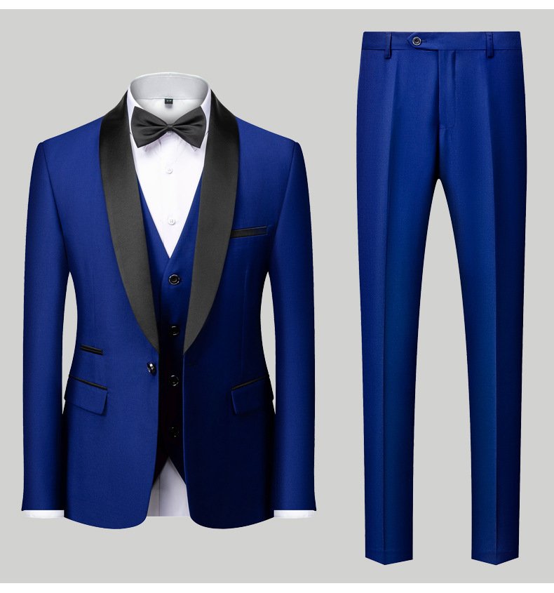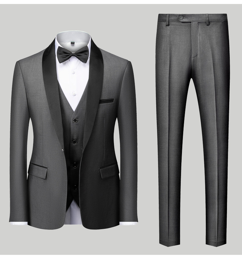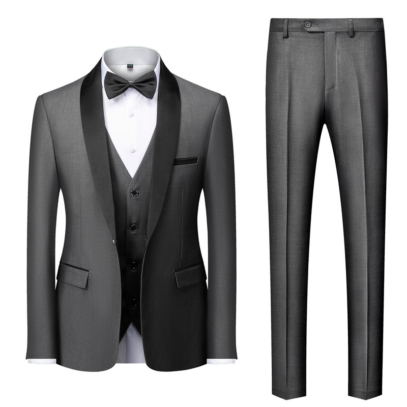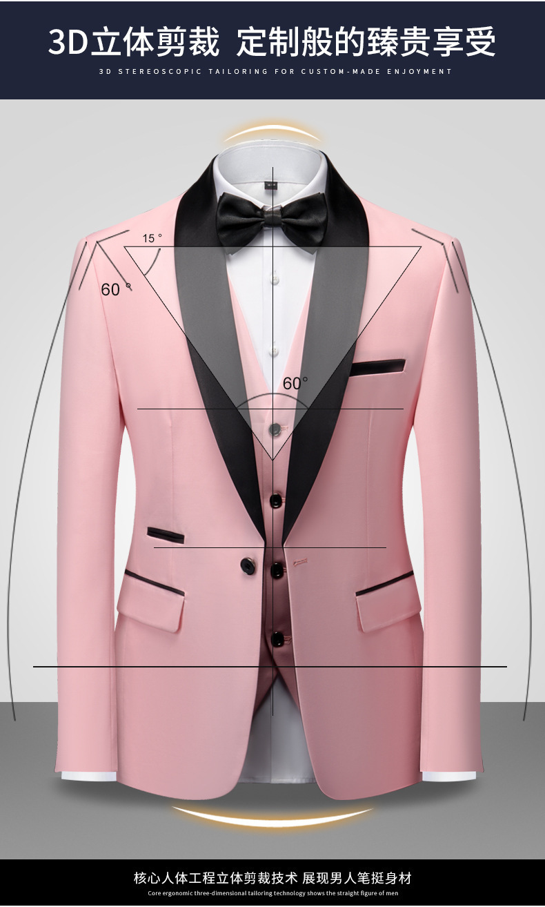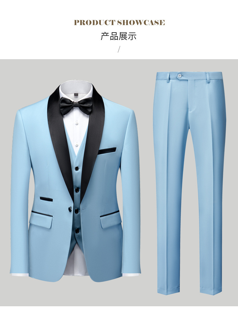跨境新款男士商务休闲西服套装男结婚司仪礼服馆大码西装三件套男
