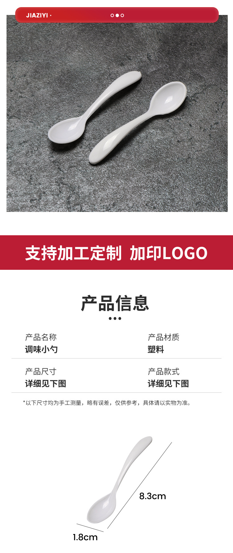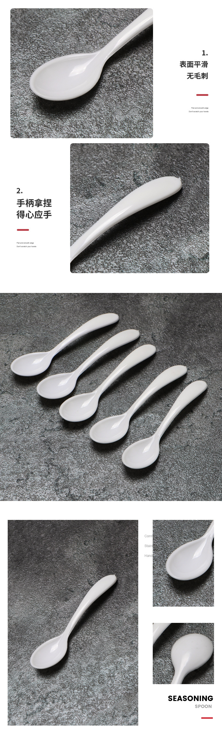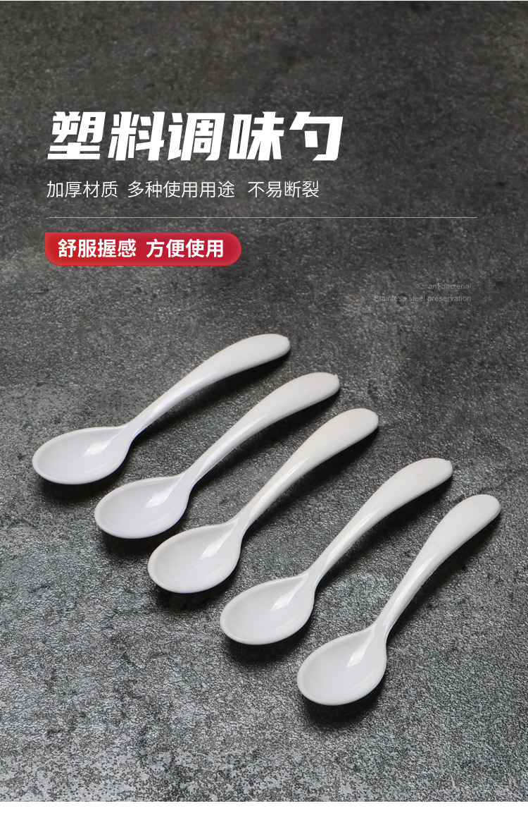 맞춤형 로고가 있는 두꺼운 플라스틱 작은 스푼, 설탕 수프 주방 스푼, 매점 조미료 스푼, 테이크아웃 포장 스푼 가공