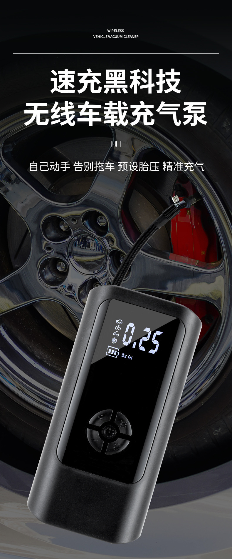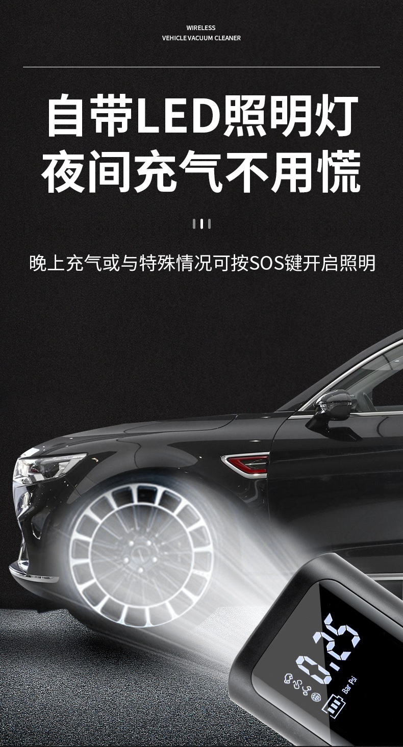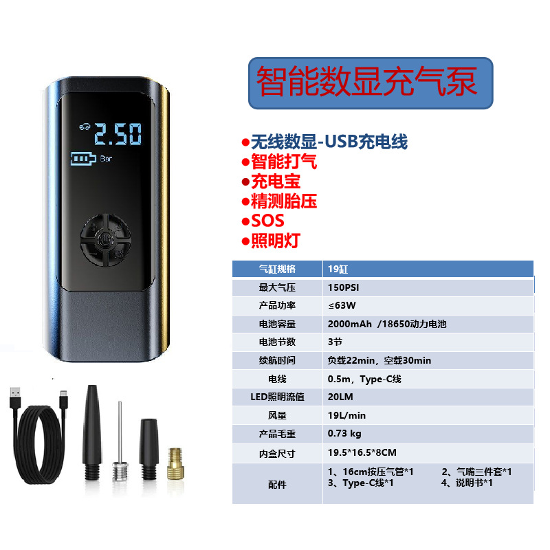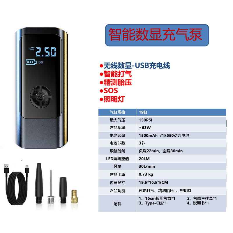 SuRui 미니 스마트 자동차 타이어 펌프 고압 디지털 디스플레이 화면 조명 무선 차량용 전동 공기 주입 펌프