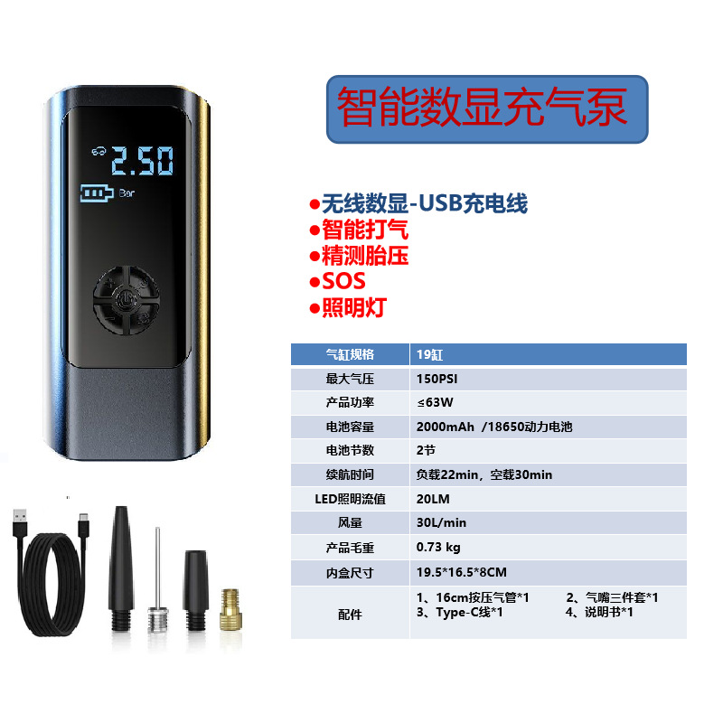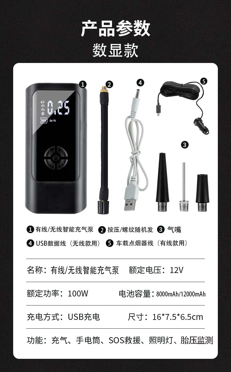 • 무선 디지털 디스플레이 모델 + 보조 배터리 + 리튬 배터리 3개(2000mAh*3셀))