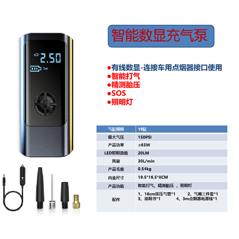 • 유선 디지털 디스플레이 + 3m 시가 라이터 케이블