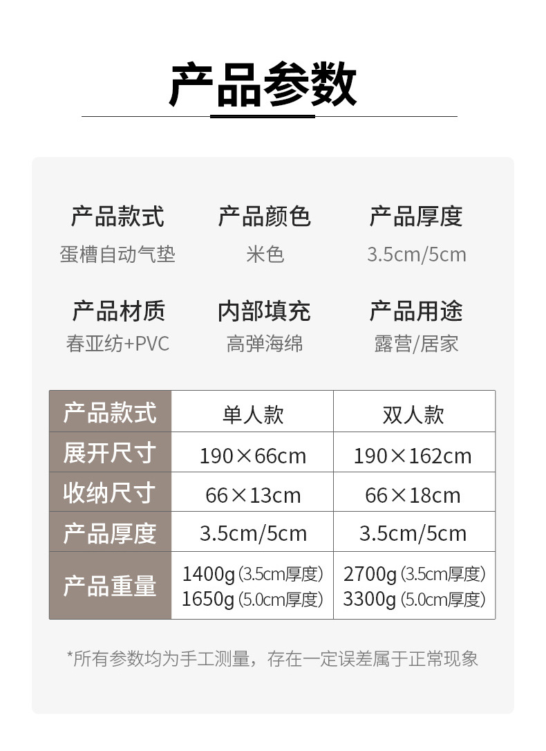 자동 팽창식 매트, 야외 텐트 매트, 캠핑 방습 피크닉 매트, 2인용/1인용 두꺼운 가정용 점심시간 매트