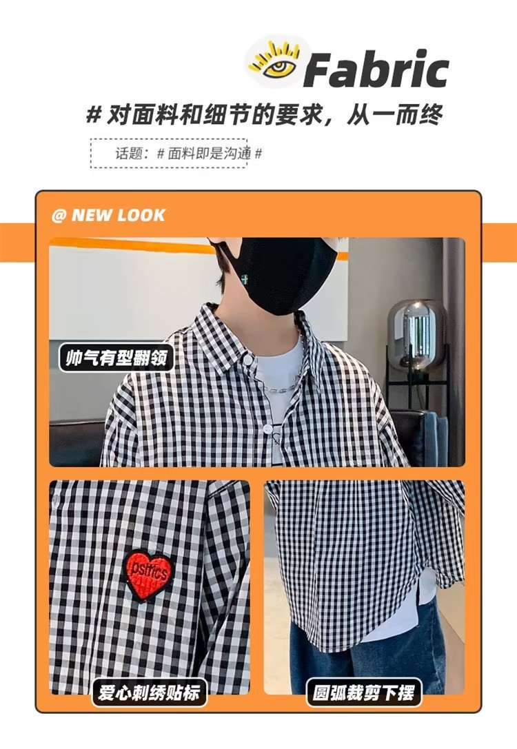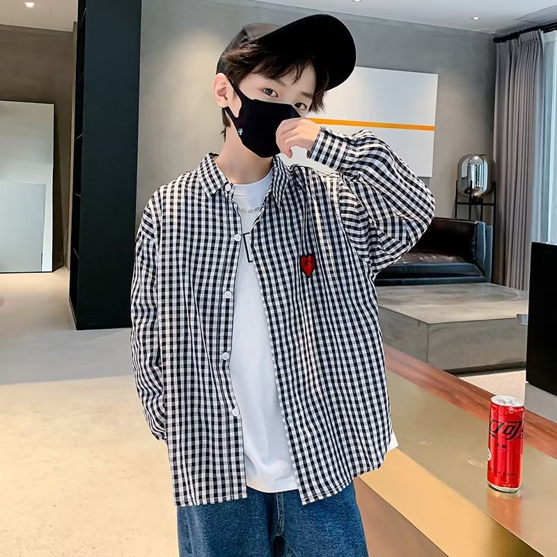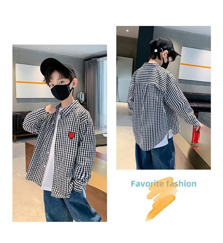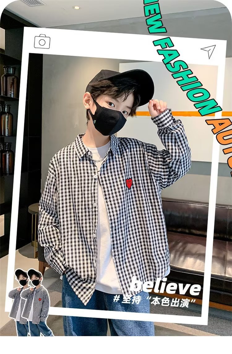 인기 하라주쿠 새로운 스타일 우아한 일본의 예술적 긴팔 아동복 셔츠 여름 격자 무늬 남성 유행 모든 매치 심플스토어 가기