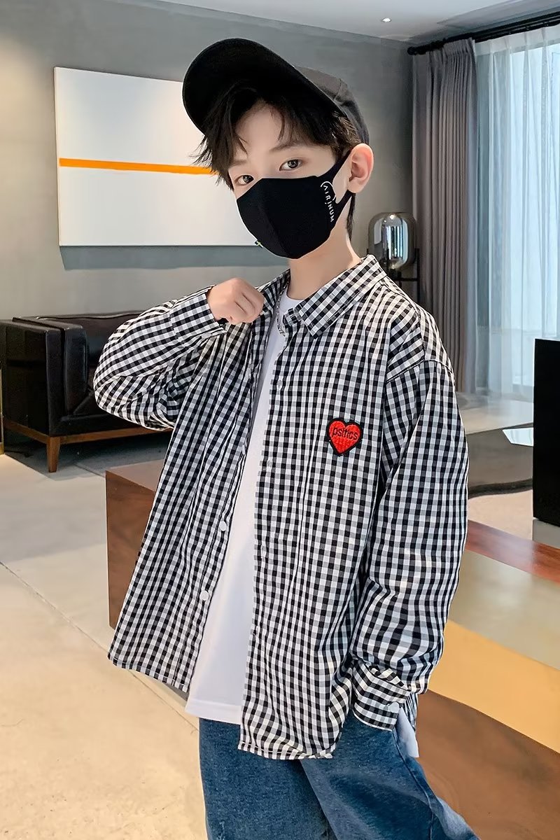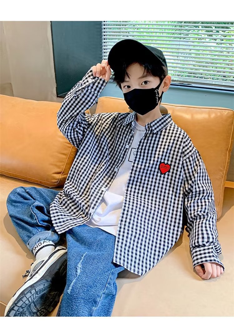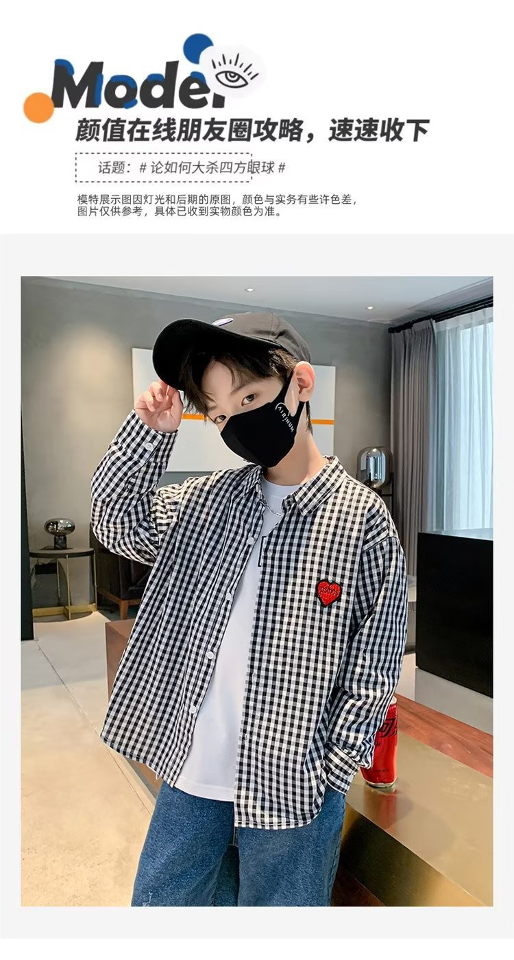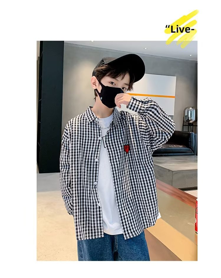 인기 하라주쿠 새로운 스타일 우아한 일본의 예술적 긴팔 아동복 셔츠 여름 격자 무늬 남성 유행 모든 매치 심플스토어 가기