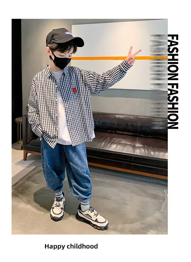 인기 하라주쿠 새로운 스타일 우아한 일본의 예술적 긴팔 아동복 셔츠 여름 격자 무늬 남성 유행 모든 매치 심플