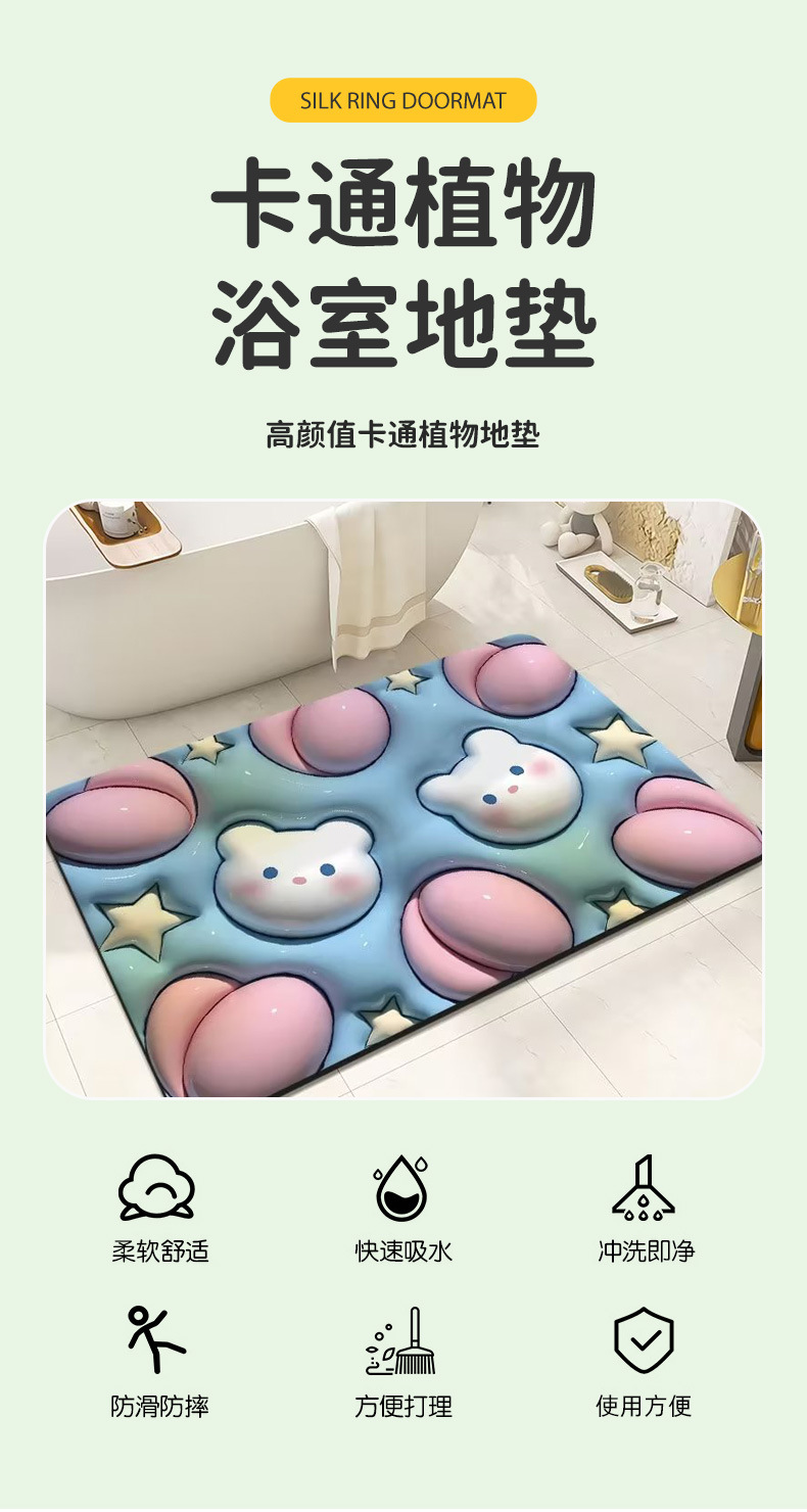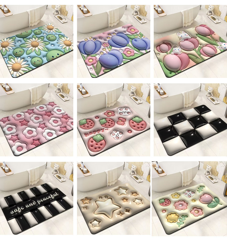 규조 진흙 화장실 욕실 미끄럼 방지 발 매트 도어 매트 귀여운 만화 확장 3D 시각 흡수 바닥 매트