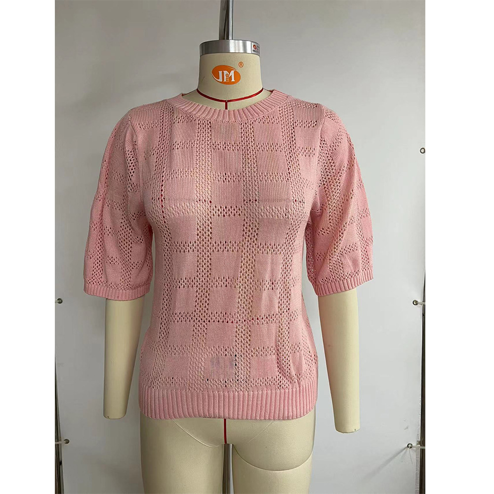 2024 새로운 여름 크로스보더 유럽과 미국 의류 Amazon 여성 라운드 넥 중공 자외선 차단 니트 스웨터 블라우스스토어 가기