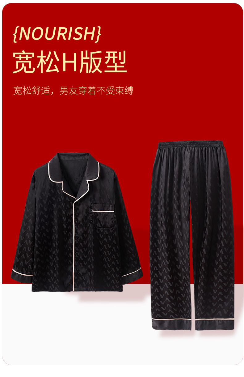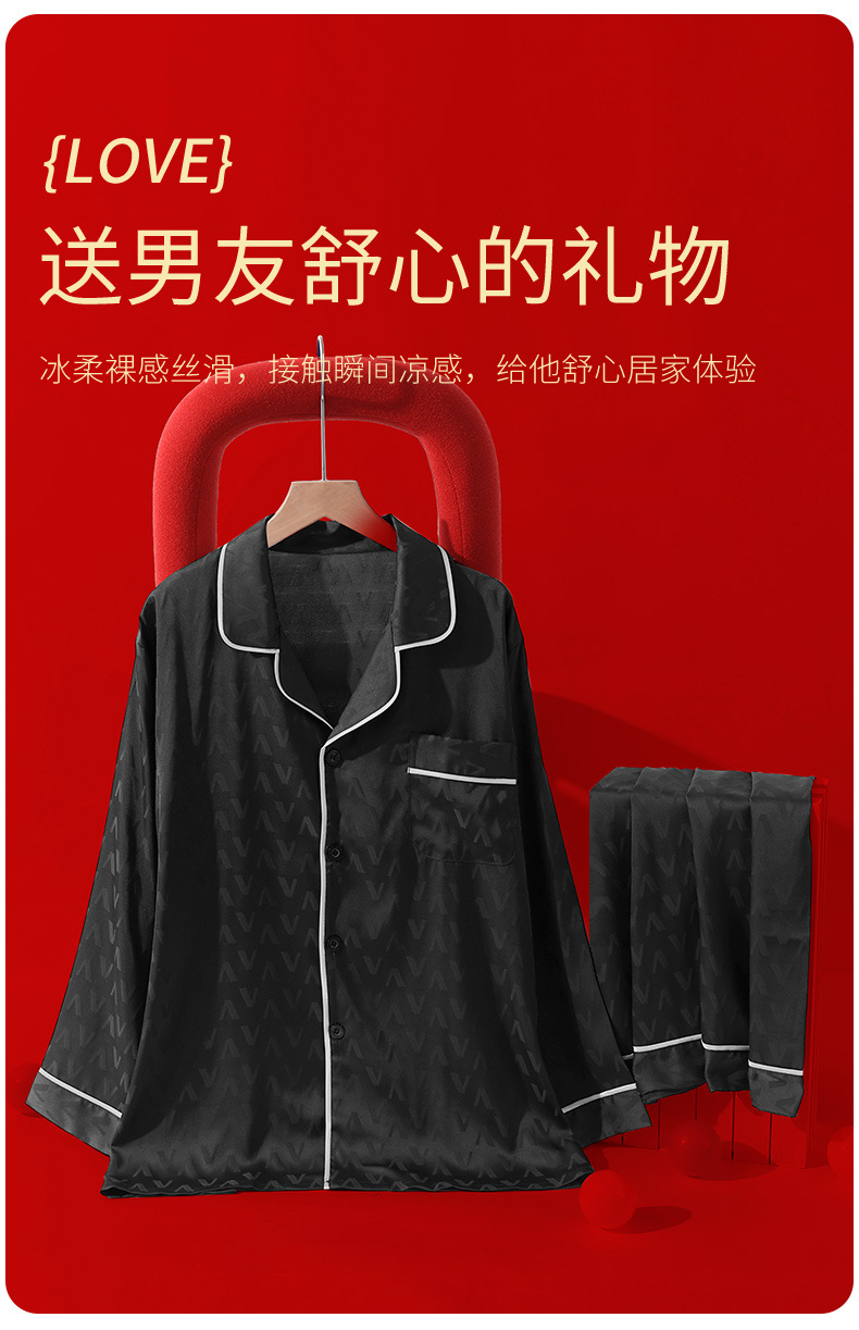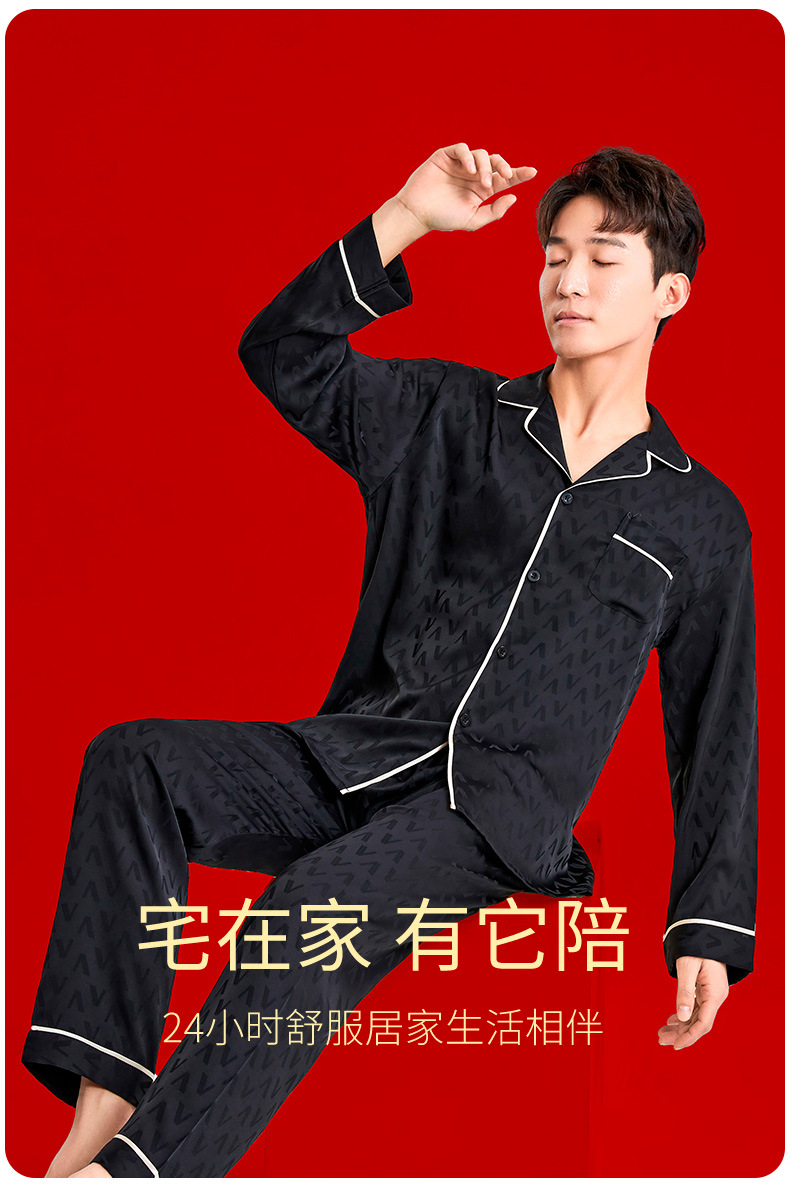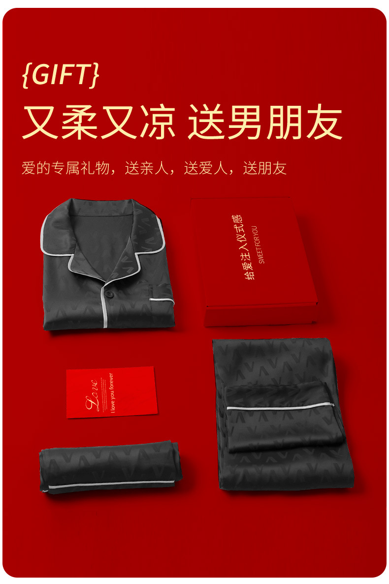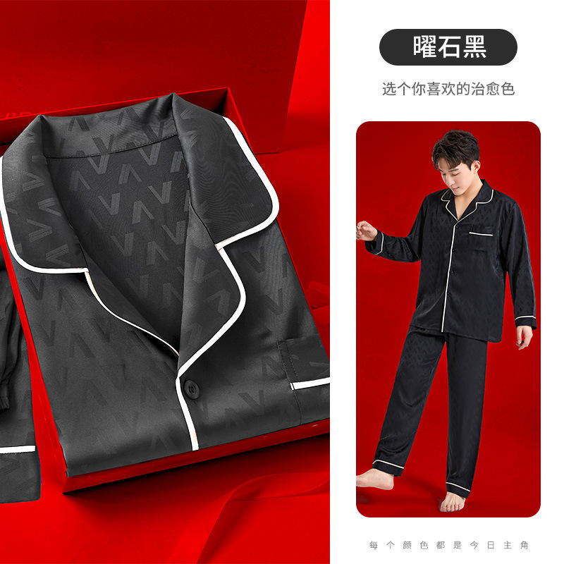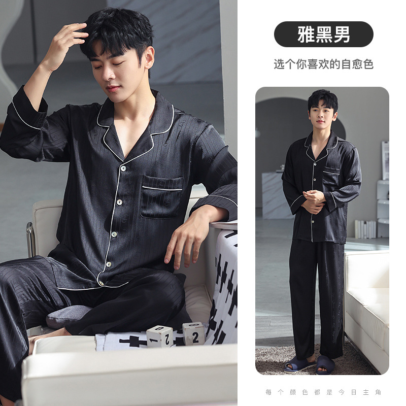 흑요석 검은 남자 친구 잠옷 남자 하이 엔드 실크 잠옷 아이스 실크 블랙 편안한 남자 홈 옷 세트 인사말 카드스토어 가기