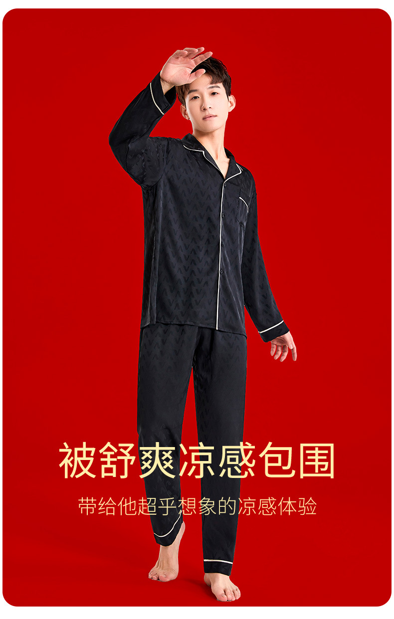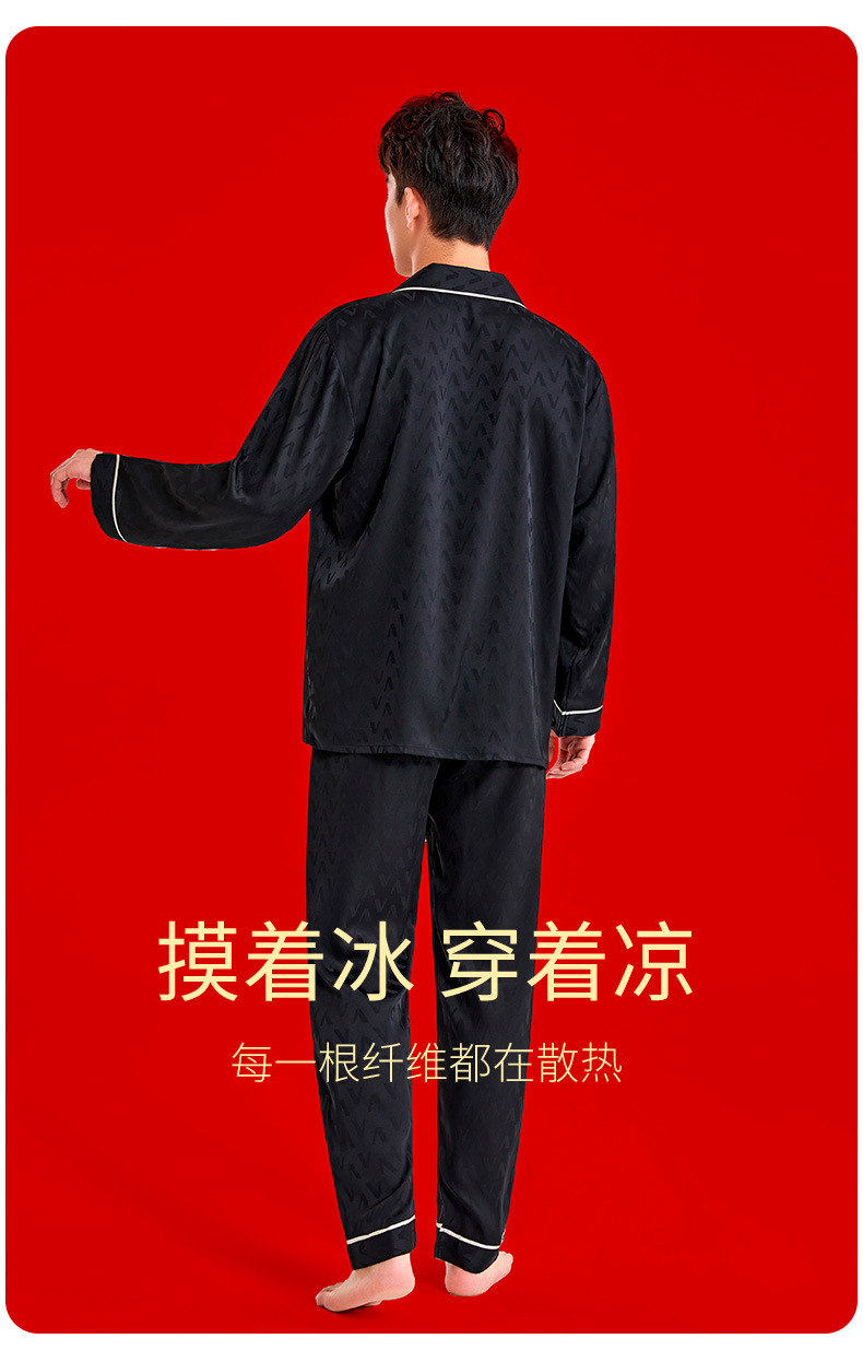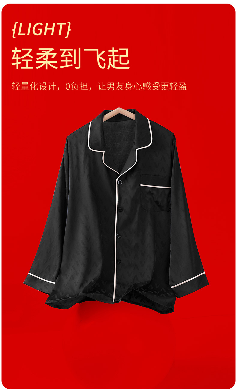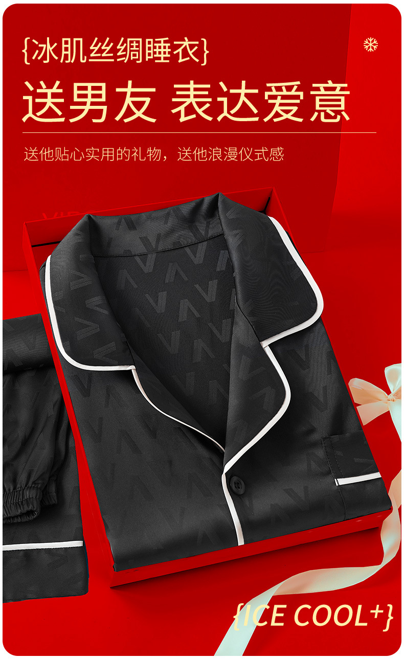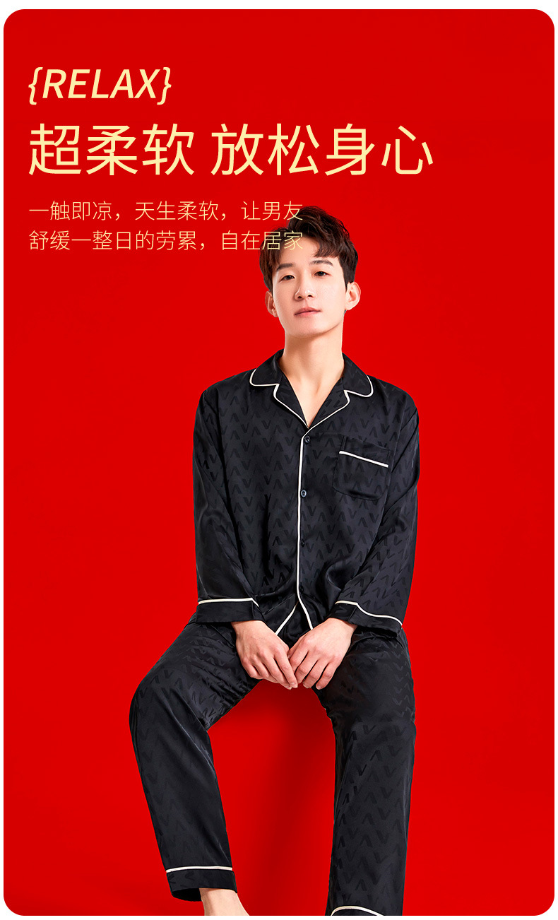 흑요석 검은 남자 친구 잠옷 남자 하이 엔드 실크 잠옷 아이스 실크 블랙 편안한 남자 홈 옷 세트 인사말 카드스토어 가기