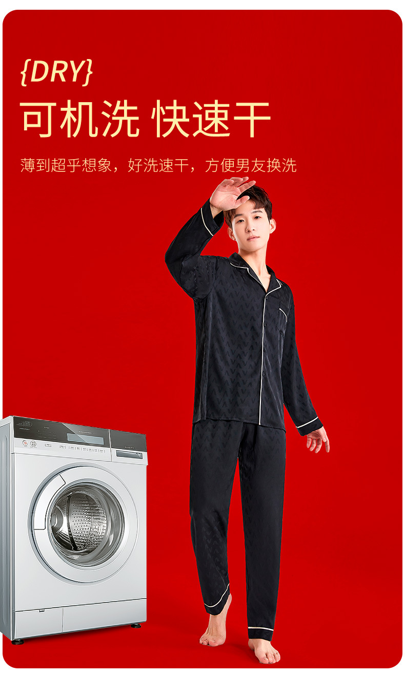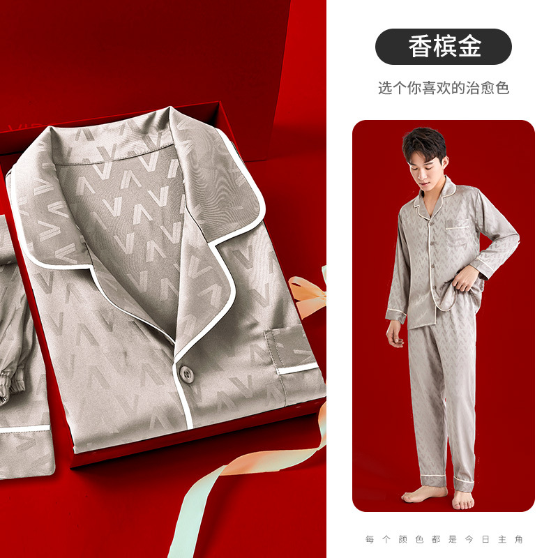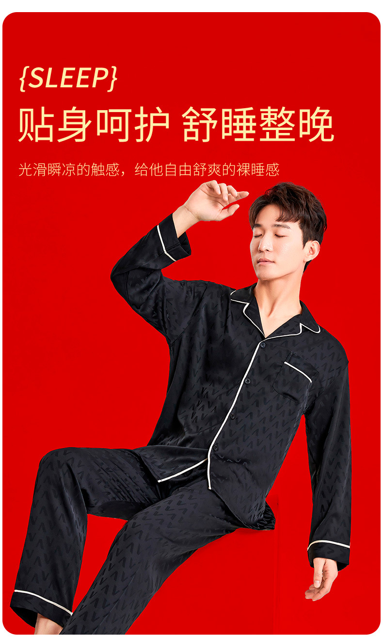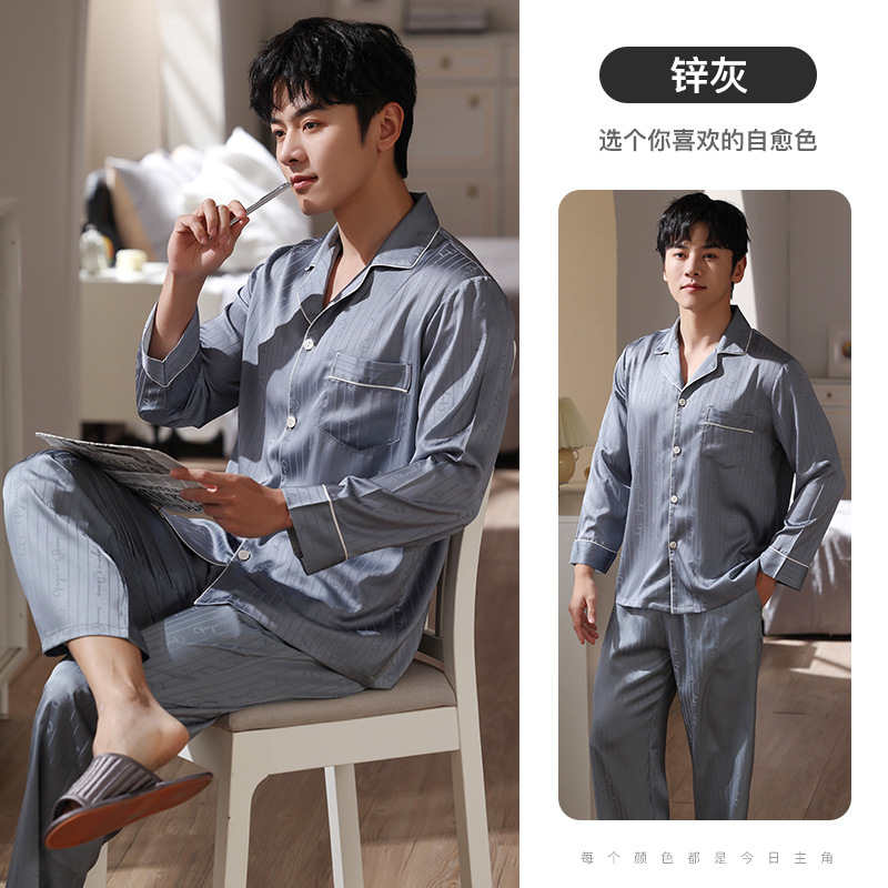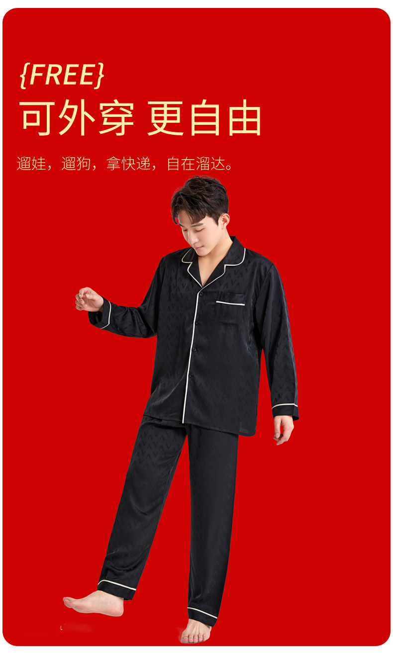 흑요석 검은 남자 친구 잠옷 남자 하이 엔드 실크 잠옷 아이스 실크 블랙 편안한 남자 홈 옷 세트 인사말 카드스토어 가기