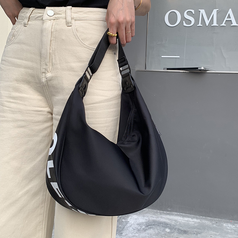 조고 캐주얼 트렌디 크로스백 심플 레터링 대용량 와이드 숄더 스트랩 숄더백 옥스포드 천 초승달백 여성 가방스토어 가기