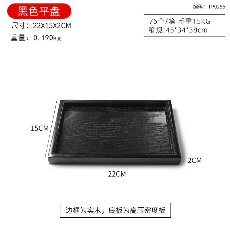 검은 나무 트레이 직사각형 차 트레이 찻잔 호텔 미용실 나무 접시 디너 접시 플랫 플레이트 광장스토어 가기