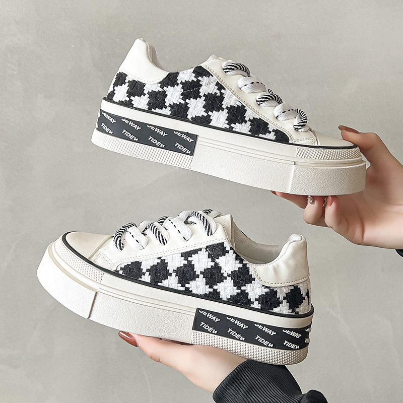 체크 보드 캔버스 신발 여성 봄 2023 새로운 캐주얼 흰색 신발 플랫폼 바닥 모든 매치 오리지널 틈새 스포츠 스니커즈스토어 가기
