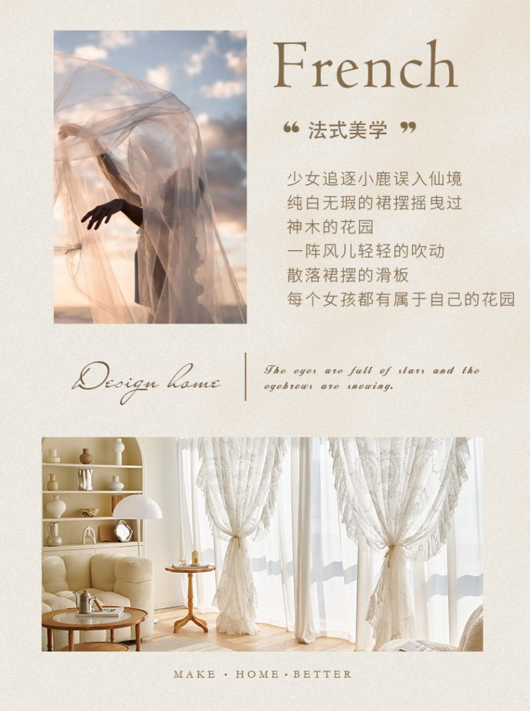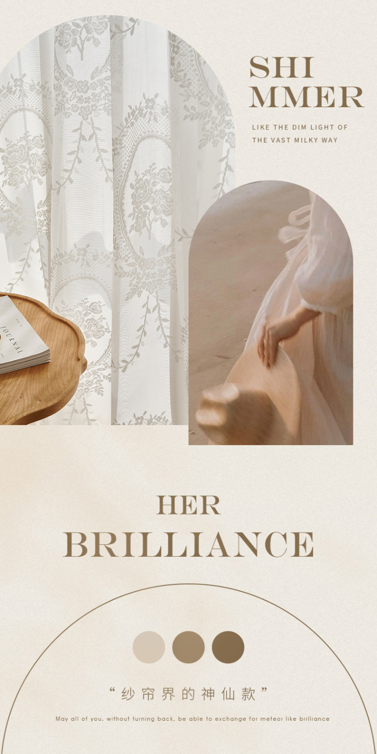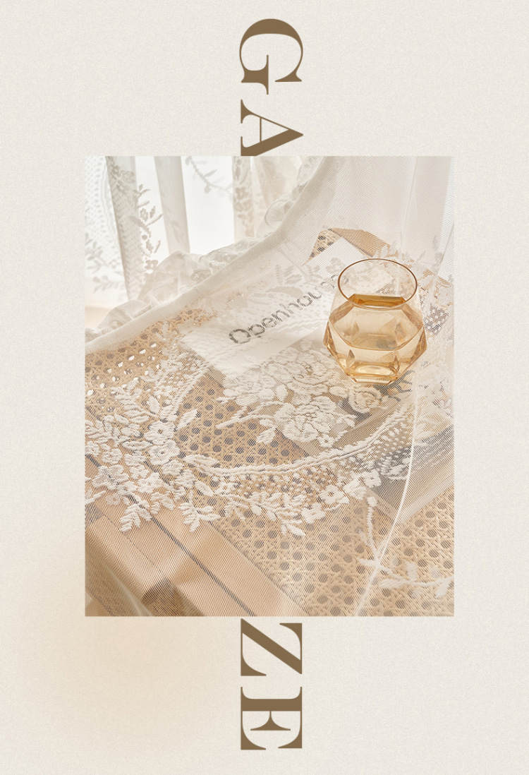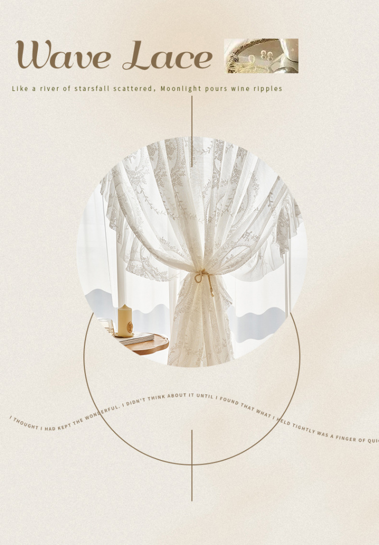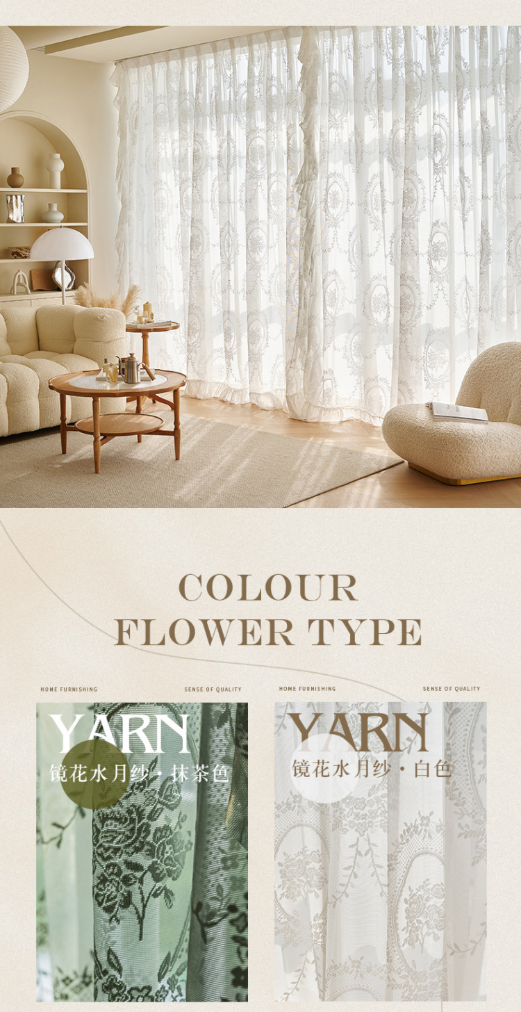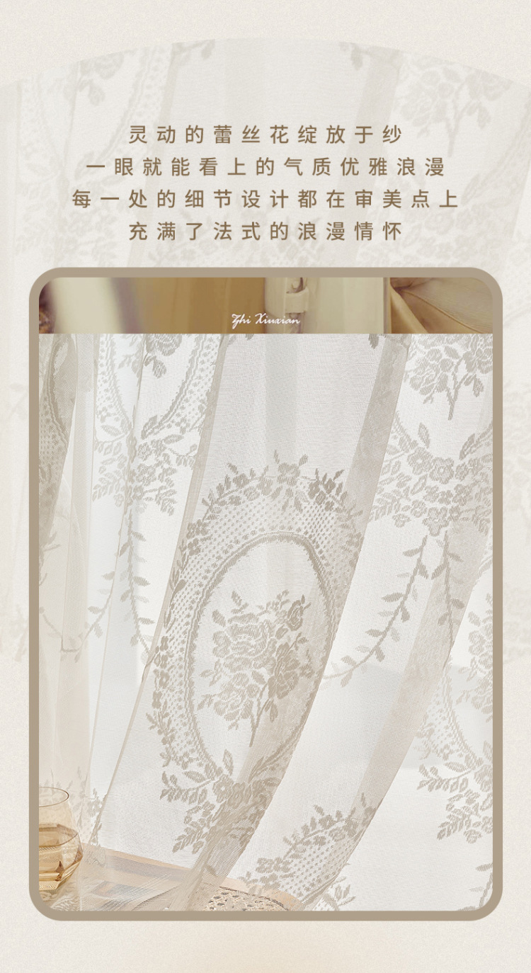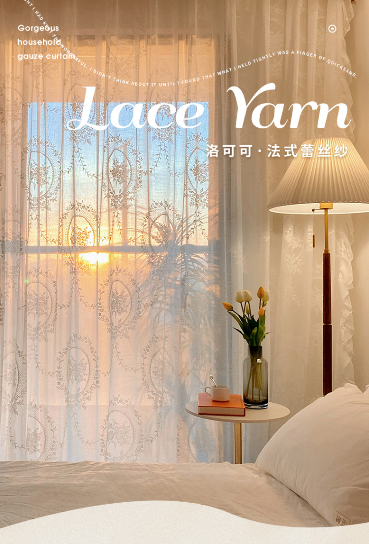 프랑스어 항목 럭셔리 빛 투명 원사 빈티지 소녀 로코코 라운드 미러 레이스 수 놓은 화이트 원사 베이 창 발코니 창 스크린
