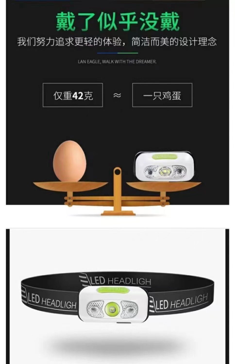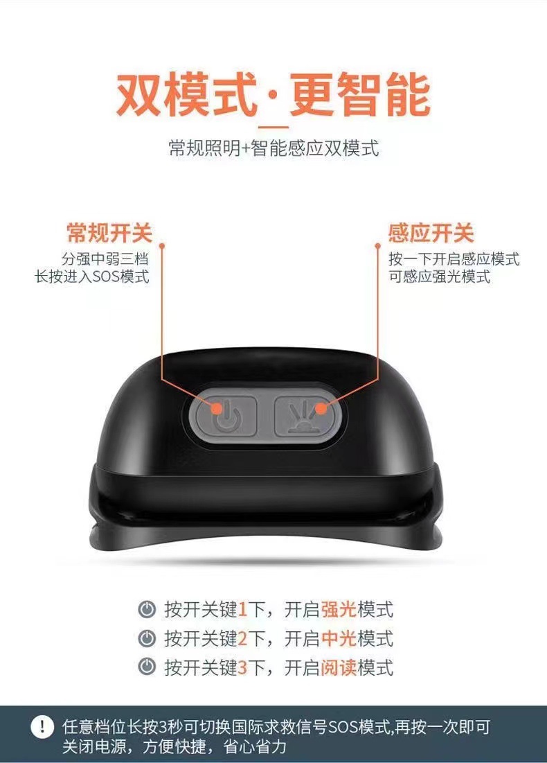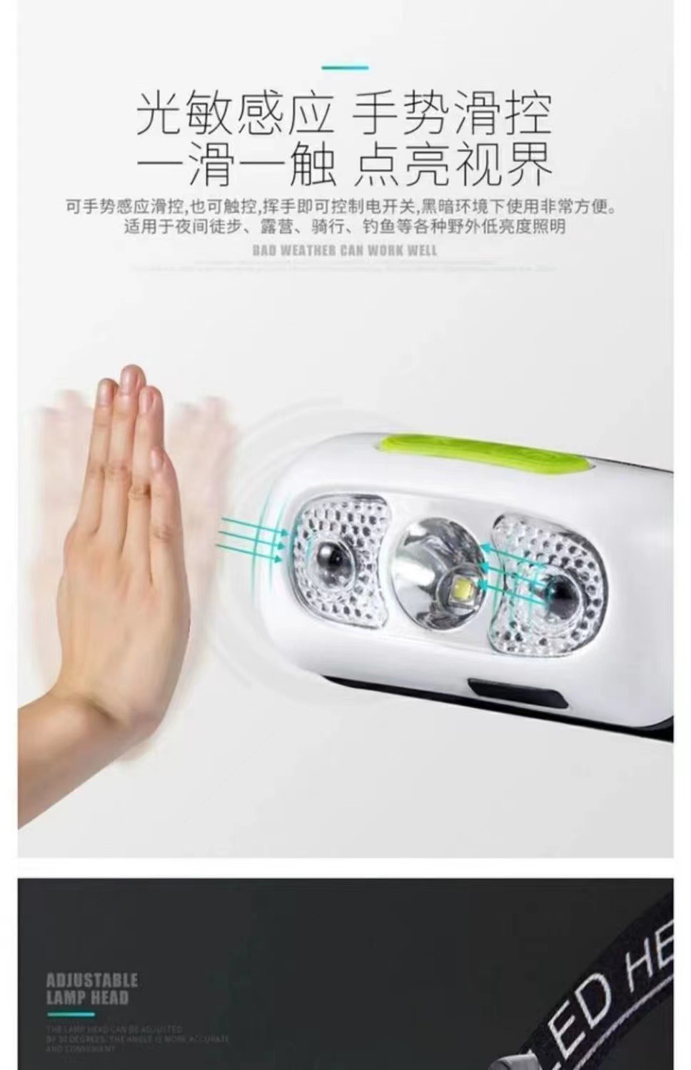헤드램프 강한 빛 충전식 스마트 센서 헤드 장착형 조명 매우 긴 배터리 수명 야외 사이클링 낚시 LED 야간 낚시 라이트