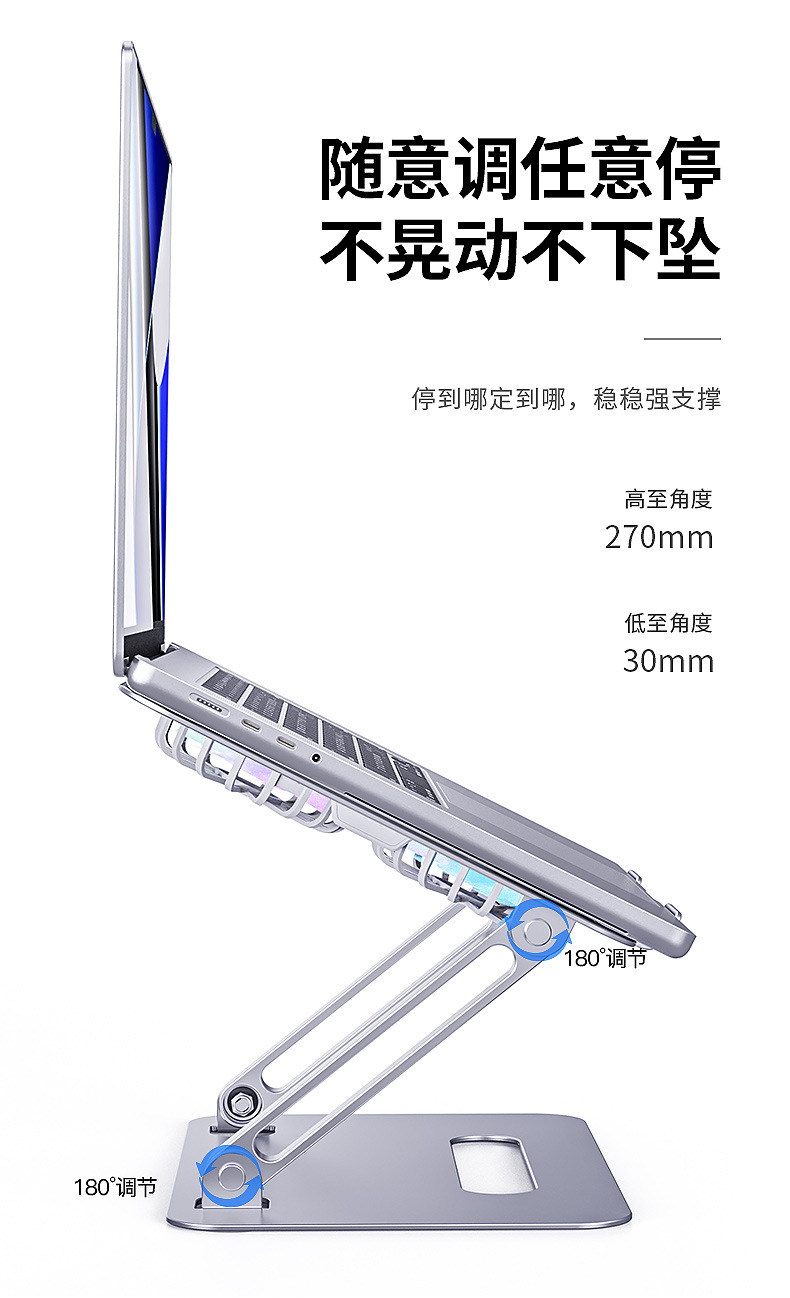 알루미늄 합금 접이식 이중층 노트북 거치대, 높이 조절 가능, 대형 팬으로 냉각, 태블릿 냉각 업그레이드스토어 가기